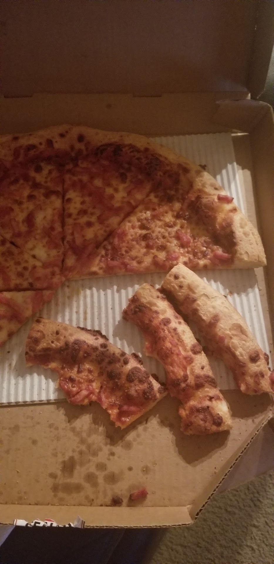 Ordered takeout. A pan pepperoni on a whim with a side of fries and breadsticks. Missed that buttery pan pizza hut crust!