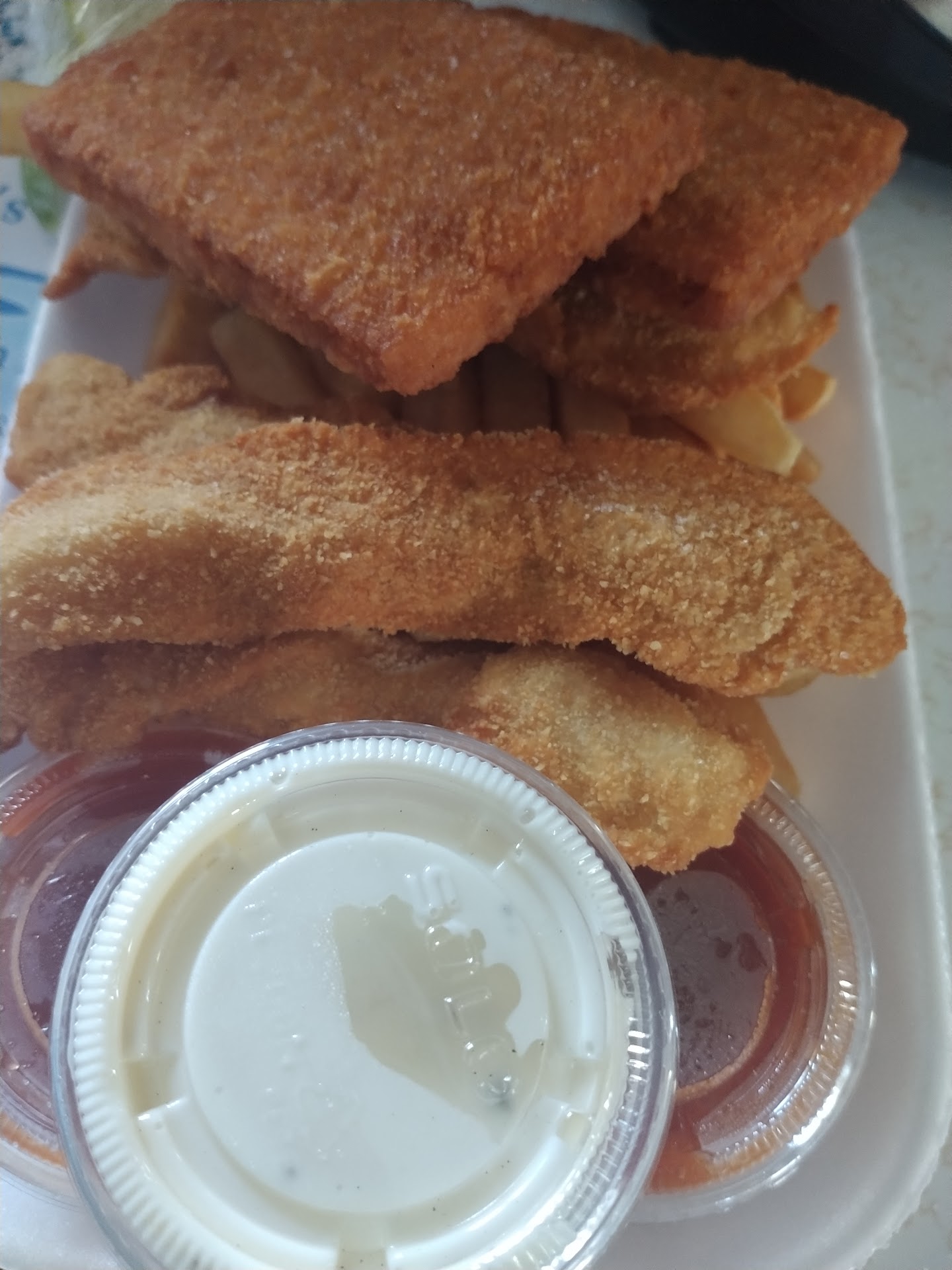 The 5 star reviews for this place cannot be real, the food is all stuff you can buy at Walmart in the frozen section. The ketchup and tartar sauce was watered down, I tried to get more to drink and no one was behind the counter to help me. We did not finish our food.