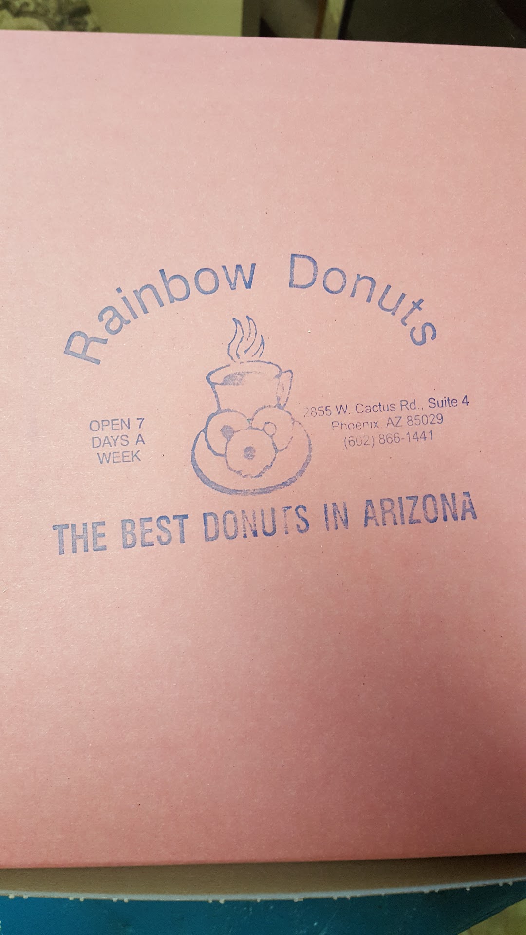 Read moreThe Rainbow Donuts Experience (Walk-In Edition). On travels in Phoenix, Arizona, I decided to venture on foot outside my Airbnb. I stumbled upon Rainbow Donuts and thought I would give them a try. Once entering, someone greeted me, and I ordered half a dozen doughnuts. I ordered the red velvet, glazed, chocolate iced, crumb, powdered sugar, and caramel glazed donuts. I also ordered a dozen donut holes.