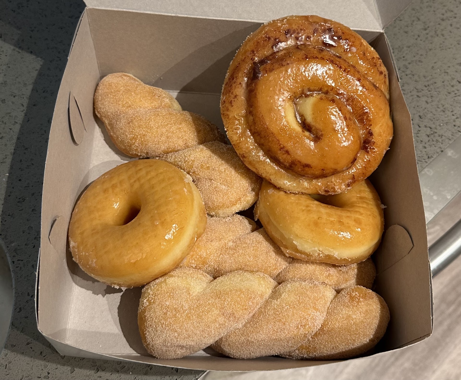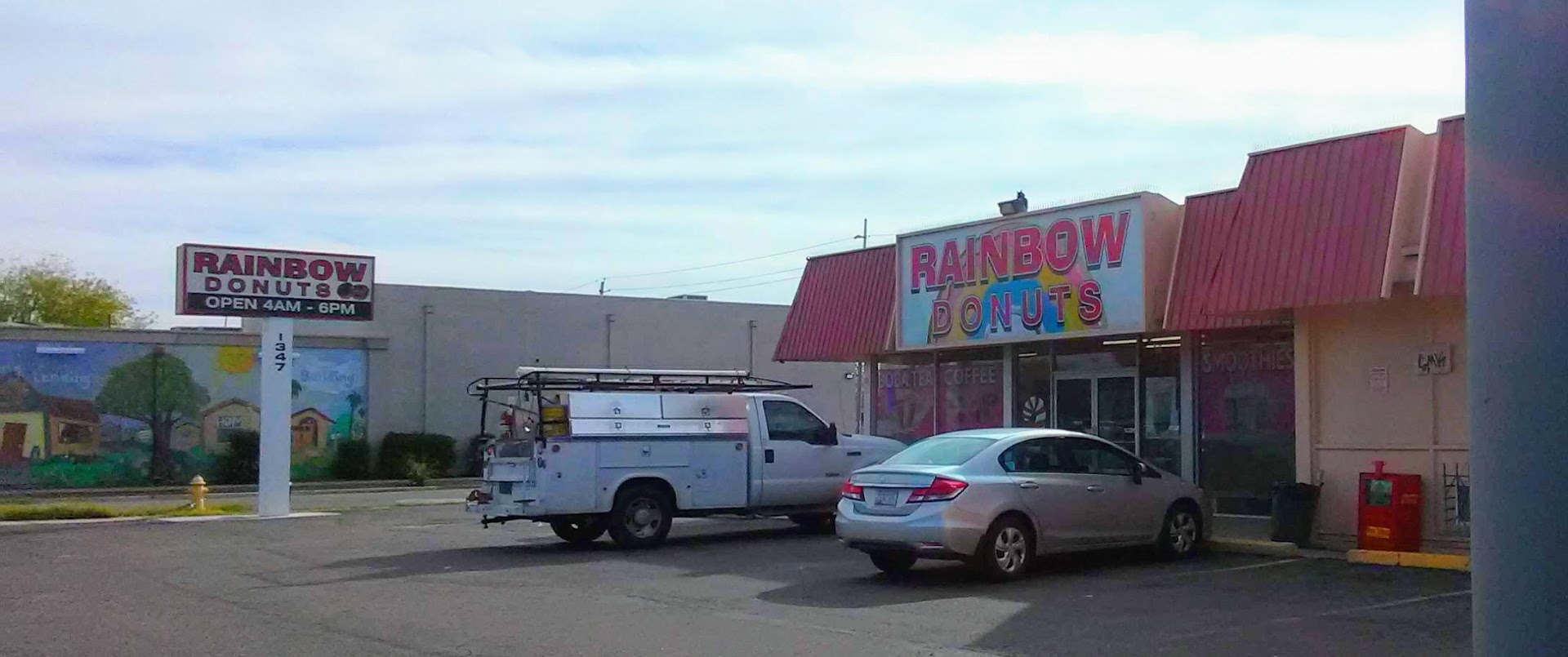 I am new to this side of town and decided to give Rainbow Donuts a try because of the great reviews. There were work trucks outside proving this establishment a great place for a delicious breakfast that wonāt break the bank! I ordered the jalapeƱo ham and cheese croissant and a dozen doughnut holes. The baker asked if I wanted the croissant heated and fortunately I did! I was a little confused about where to pay, a regular walked in grabbed her Red Bull and the gentleman asked if she wanted the jalapeƱo she shook her head yes and it arrived just like that. She paid, mapping out the routine and confirming my lucky choice. The croissant was flaky on the outside and had the perfect balance of thinly sliced ham, cheese, jalapeƱo and buttery layers of croissant on the inside! I didnāt need the doughnut holes once I ate the croissant but they were also delicious! The purchase was less than $7, confirming my choice once again! This is a breakfast I could eat daily and not have to sacrifice buying my dogs the expensive brand of dogfood from Costco. I will be dreaming of the croissant until next time! Do yourself a favor and grab a quick jalapeƱo, ham and cheese croissant on your way to work. Donāt sleep...