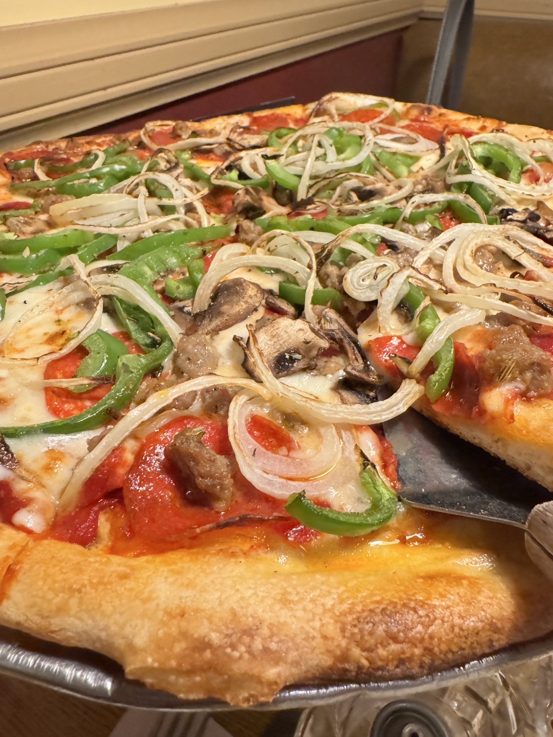 Figured I would try an old favorite. Note to self. Stick with what you know. So I ordered this on the Google connection, called EatStreet. I placed my order at I think 237, and it was going to be ready at 2:57. I received an email confirmation stating this. I arrived at 3:02, and the hosts at the counter inside the restaurant, Grabs my ticket and went back to the kitchen to get my order. When he came back he brought one part of the order which was an order of spaghetti and he said that my order was not going to be ready until 325. I told him that’s impossible because this is 257. He went on to explain that this is like the third time this has happened this week and that this Eat Street company is telling people their order will be ready 20 or 30 minutes before it’s actually ready. They showed me the receipt they received from eat street which showed that my pizza would not be ready until 325. Told him that was not acceptable and I wanted to speak with someone in charge. And by the way he said that they have put the pizza in the oven and it should be about 15 minutes. So some young lady came out I do not remember her name, so I asked what was she going to do about this mixup. In short, absolutely nothing. She took my name and phone number and said some guy would give me a call on Monday. This is Wednesday when I’m writing this review, I’ve heard nothing from them. She offered me nothing in return for the mixup. So I wait until 325, actually, it was 320, to receive my pizza.I did not think to take a look at it. Once I got home, we had noticed that the pizza was slightly under cooked. By that I mean the cheese had just gone into the melting stages, and there were no toasty areas except for on the crust.
