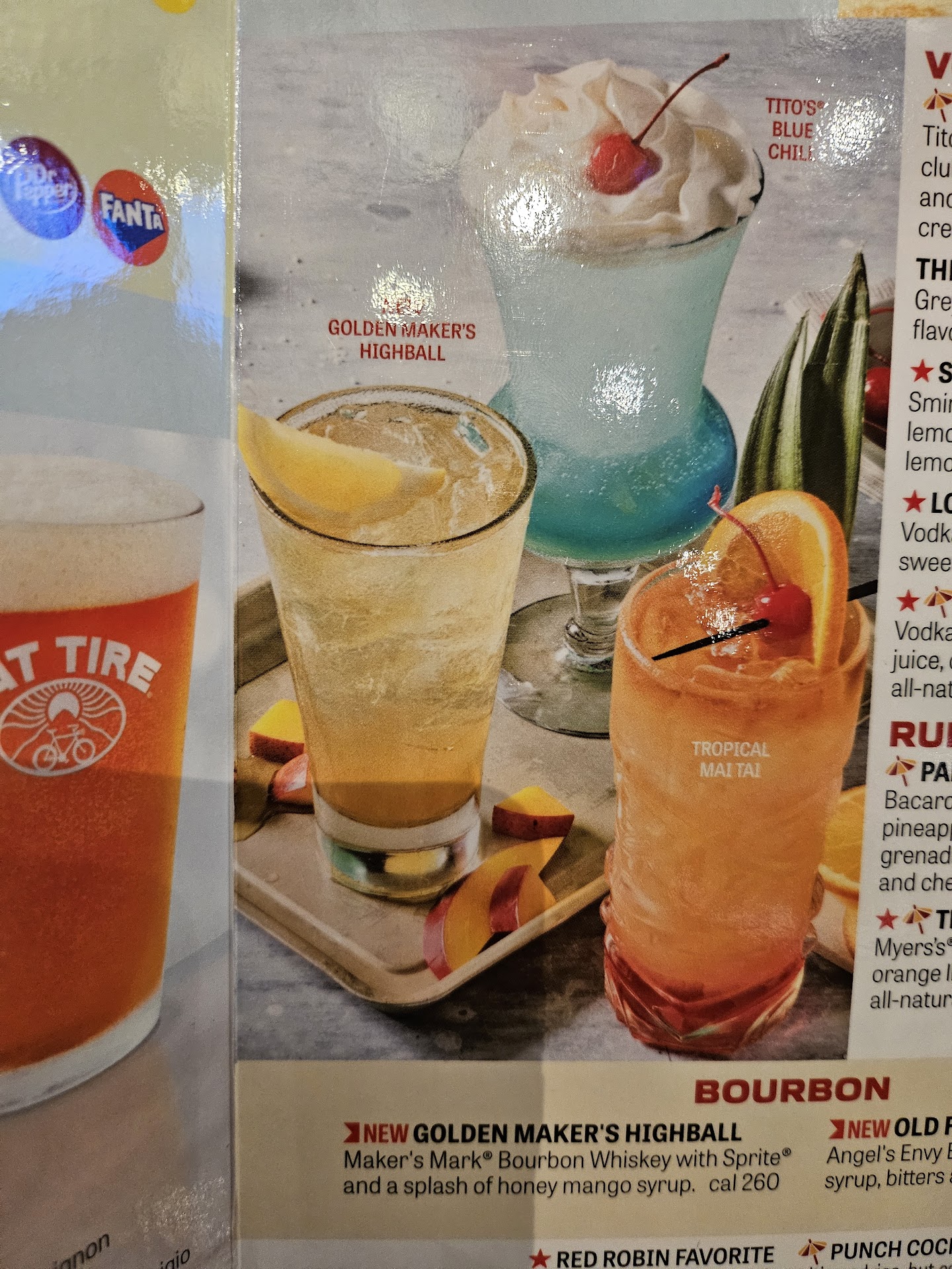 Read moreWent in with my wife for my birthday. Promptly seated at booth in the bar and then forgotten about. Some girl came by approx 15 min later and said someone should be with you shortly, I'll tell her. (The restaurant was mostly empty) Another 5 or so I got up to find someone and looked towards the kitchen. 4 employees standing around with a plain shirt guy who turned out to be the manager. He said he'd get someone over right away and apologized. Sat back at table, nobody ce over so manager did himself with a pen and scrap paper (not the restaurants tablet the servers use) asking what we wanted to eat - though we hadn't even gotten anything to drink yet! Someone else came over and he motioned them away, then another girl came and took over. I ordered their new premium drink, and what I got was whiskey and ice cubes in a short glass. Considering the name and picture of the drinkbsaid tall glass I asked for the other half of the drink either made in the tall (and more volumness) or a second short one so as not to waste. What I got was a Manhatten tall skinny glass with more ice, still missing the 2 mixers! Food came out quickly and prepared correctly but we were again ignored for any refills of fries, drinks, or to see if everything was ok. I couldn't use the kiosk to order refills as the server never logged it into the table. Finally the he/she bartender came over to tell us about our bill (we aren't done eating yet!). I asked for more fries and wife's refill of speckled lemonade and he/she brought it over quickly. I was then able to pay for my meal on the kiosk and leave. Worst experience at Red Robin ever. Manager needs technical training and management...