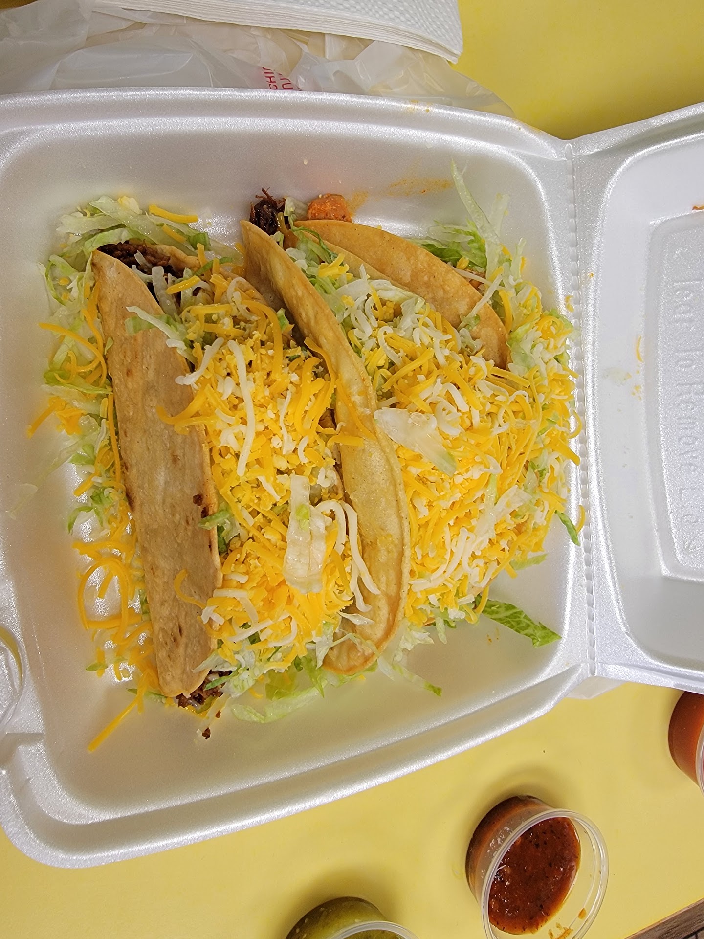 Read moreIt's Mexican fast food. It's a 2.5 stars from me. They don't have a drive thru. I ordered 4 tacos for taco Tuesday. I guess the cashier only heard 3 but I was fine to pay 2.50 less. I got a ground beef, beef and chicken. I asked for 2 chicken. She didn't register the 4th taco.