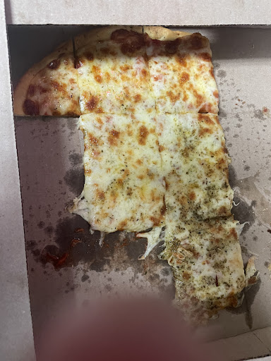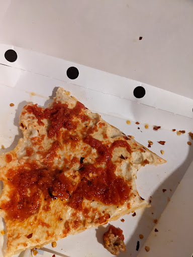 So finally I had to ask. Of course, they'd been sitting in the warmer SINCE WE'D ARRIVED, some 30 minutes ago. Clearly angry we'd been waiting for so long, and our tasty, fresh Rosati's pizza now reduced to stale, gooey mess, the girl can only muster a "sorry" and an "enjoy your pizza".