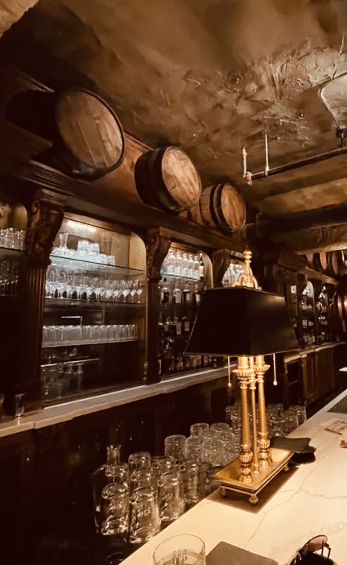 The first thing you'll notice is the unique, never before seen, old Victorian Era inspired design and flow. Beautifully crafted, elegant bartenders and servers dressed down in black vest and black bowtie, some handlebar mustache wearing, just got off the titanic kind of vibe.