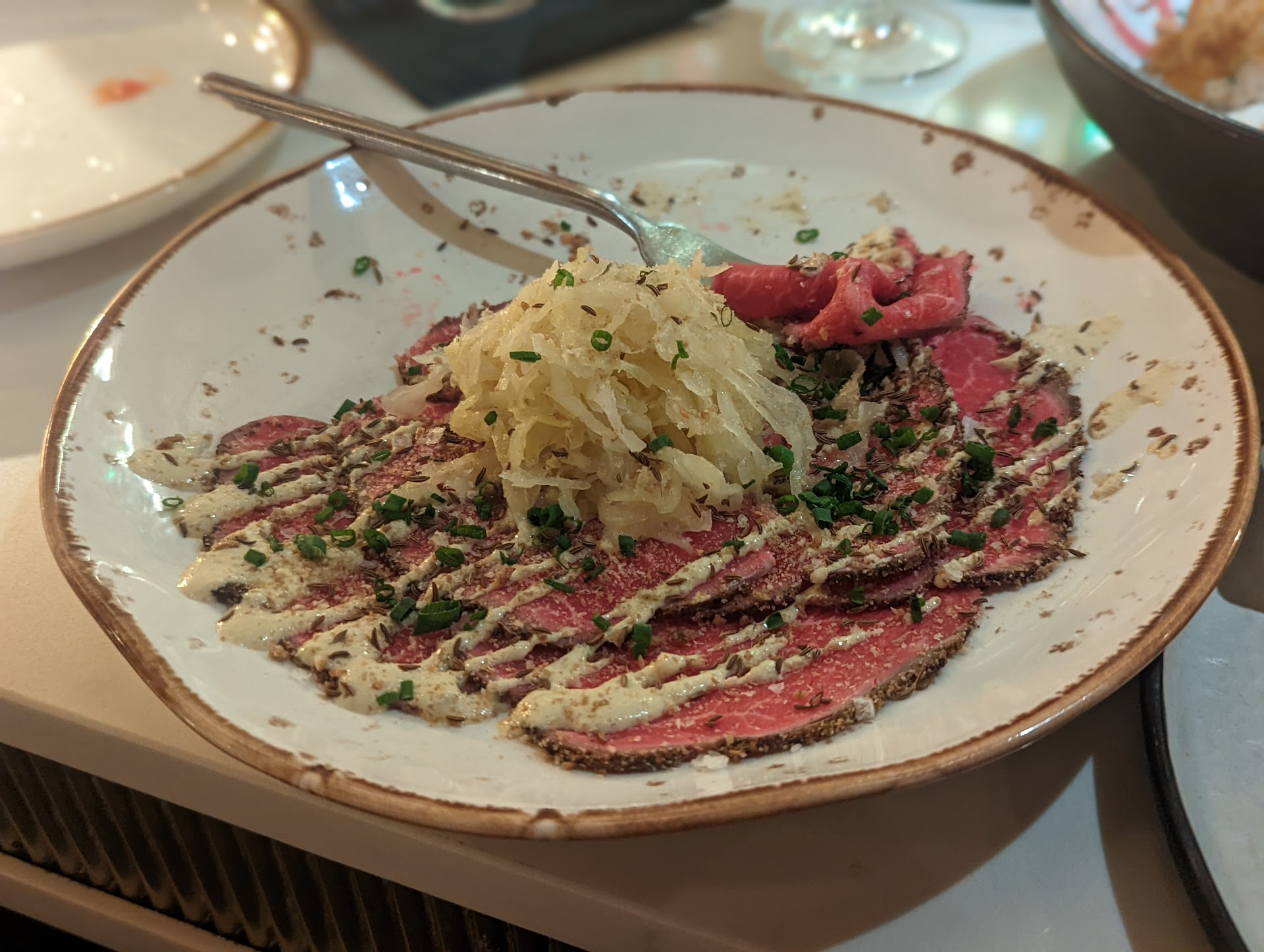 Ā Ā Ā Read moreI will preface my comments with the fact that I am a āWinoā and I frequent BYOB Restaurants. I found the wine prices to be outrageous and planned not to have any wine and judge the place on only their food. Most of the wines I reviewed were 3+ times retail and a limited list. The other couple wanted to have wine so we did. My friend ended up regretting ordering the wine. More on that later. To the food, we were told we needed to have the Fried Cauliflower. Unfortunately, that is where it started. Flavor was good but the dish was very salty. I see why people like it and if you donāt mind saltiness, I would say it was good. Also had the shrimp appetizer and for 4.50 a shrimp, the quality and flavor was underwhelming! The shrimp were average and small for the price. The salmon appetizer with the crackers (said comes with lavash) was ok too. One of my criteria that I use to judge a restaurant is their Ceasar salad. If you are going to put it on the menu, it better be good. I could not recommend that salad and would not order it again. Take a pass on this. Then we went on to entrees. I really didnāt see anything that moved meā¦. I considered the duck but it had a tangerine sauce and that definitely would not have worked with the red wine. The fish was Trout so I passed on that too. Since nothing else moved me, I decided to have the Carpaccio. I love Carpaccio so I thought I would have that. It was their interpretation of Carpaccioā¦. Someone would like it and at best it was average. A good cut of meat but it was a little mushy. I love Wagyu but not sure I would use it for carpaccio. I would not order it again. The pasta dish I was told was spicy but not sure why it would be. The only dish that got the thumbs up was the rib eye. I did not try that so no comment, however, it did look good. Maybe I should have just had a piece meat but I wanted to experience the skills of the kitchen and the quality of the food. Turned out not to be the best choice. Overall the food was ok. Now back to the wine. I would not have minded paying 100% over retail but over three times, that is ridiculous. The wine, Canvasback made by Duckhorn, I would never buy and this one at $115, it was over the top expensive. Nothing on the wine list moved me and for the prices, not worth it. I would imagine Rough Rider does a better cocktail business and maybe those are good. As they say, In matters of taste, there is no dispute. We would not go back. I would rather to go Atlas Bistro, my favorite BYOB fine dining restaurant and take a 15 yo beautiful bottle of wine! Itās not awful, it was ok and why I gave it 3 stars. Our server did a very good job so no issues there. The ambiance was a bit nostalgic featuring Teddy Roosevelt and that was interesting, however, it was a bit...