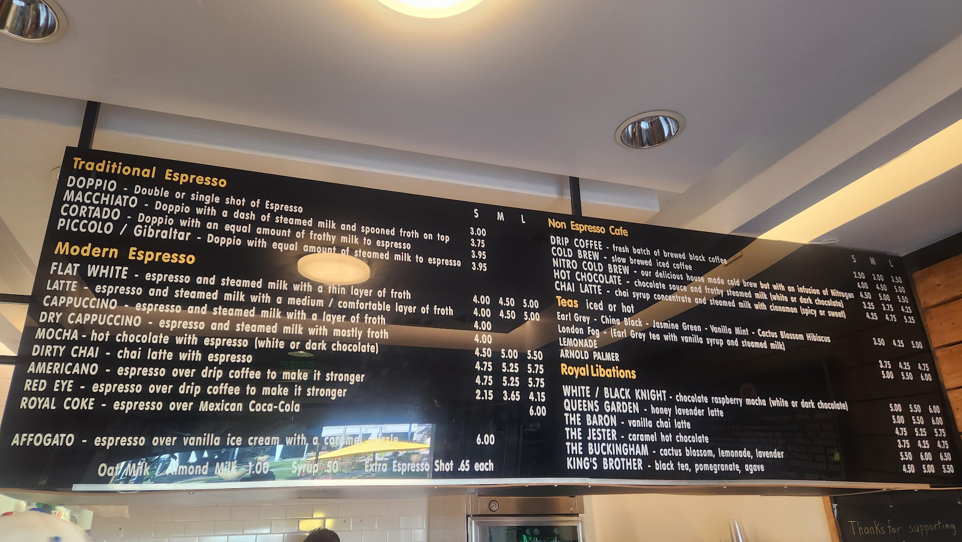 Took my Mom to Royal, and the barista came out from the back and promptly put his head down on the register- arms crossed. When I asked him how many shots the large latte had, he shot 4 fingers out from his folded arm on the side of the register without lifting his head. I stepped up to order and as another customer came in, he beckoned for them to take their order. I told him, âthatâs okay- I think weâll go somewhere else.â He replied, âgreat.â I am glad the owner reached out. The one time I had been before it was a good experience. Good customer service- let alone people who want to work is hard to come by. Raising the stars for attentive...
