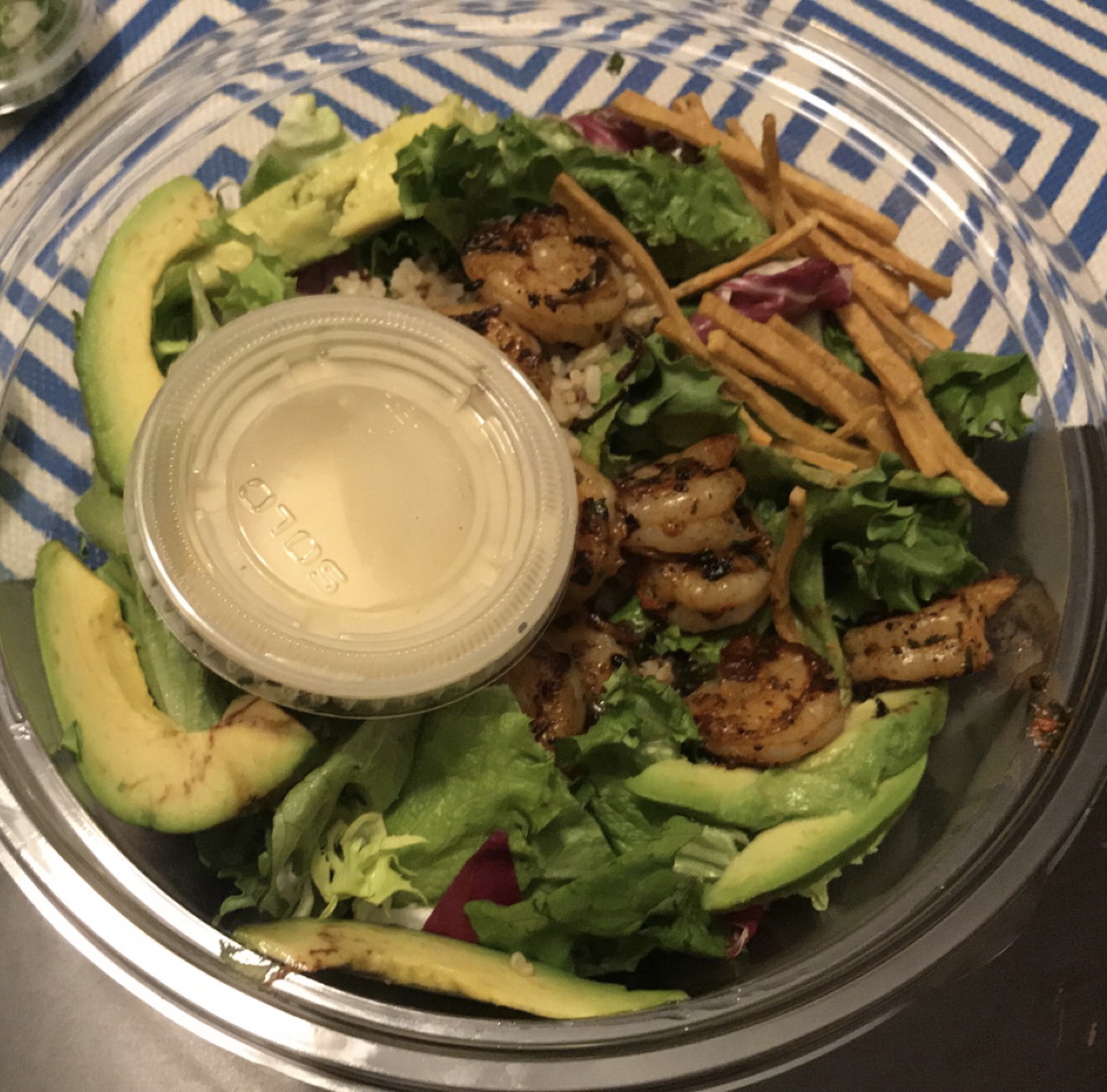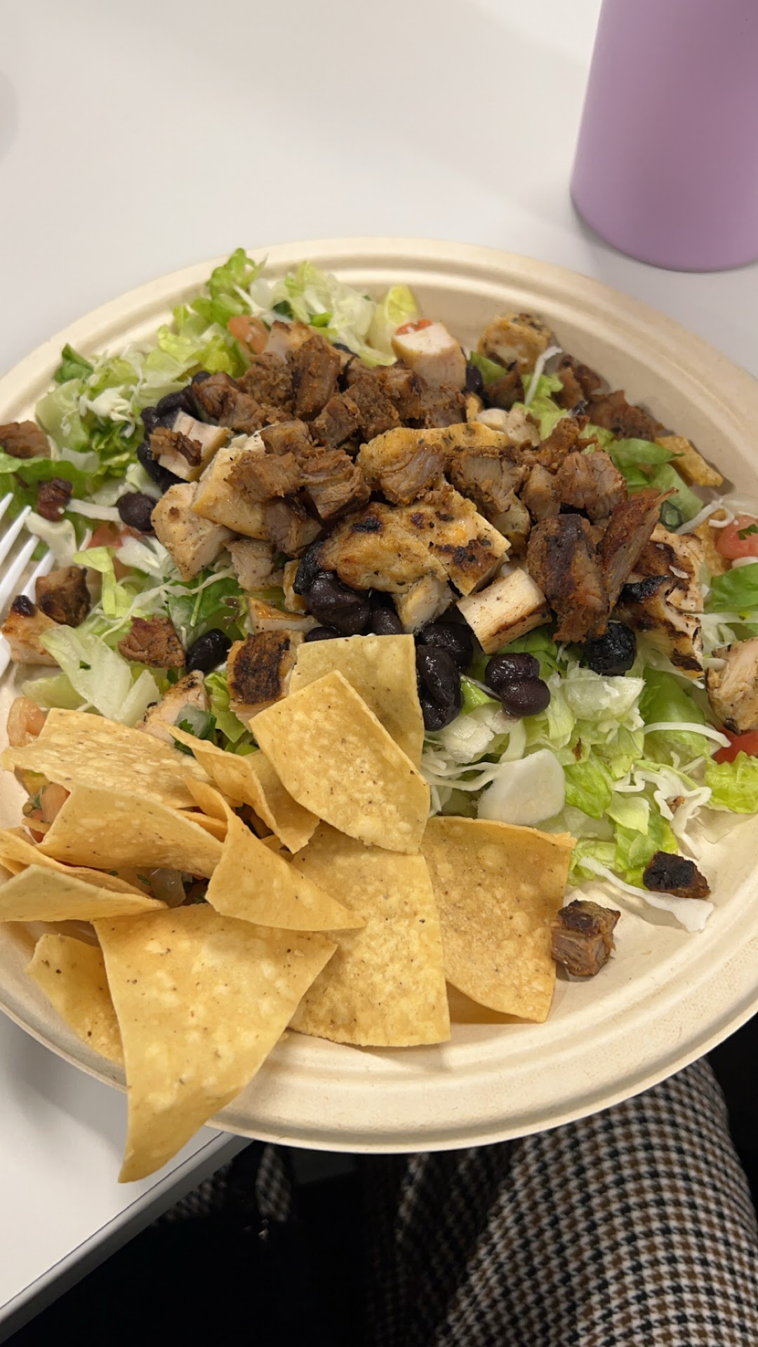 I appreciated that the bed of lettuce wasn’t solely lettuce, but had cabbage slivers and carrots mixed in too. Unfortunately, the meat - chicken and steak - were a little dry and could’ve had a lot more seasoning on it. Also, the chips were hard and had no flavor, seasoning at all. Tasted like crispy cardboard, so I didn’t finish those.