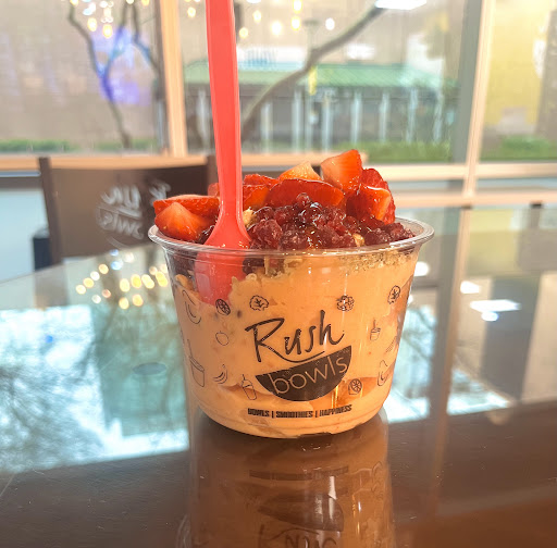 ย ย ย Read moreThis was my first time visiting. I wanted a healthy afternoon snack to hold me over until dinner. I was really excited to try Rush Bowls. The service was great, (the girl behind the counter has a unique knack for customer service, which is a rare trait in someone as young as she was). The atmosphere and vibe were great. The branding of the product was great. BUT... the price of a bowl (which is basically a smoothie with toppings) is far too expensive at $10 when a smoothie is $2 cheaper. I noticed that alternative milk options are an extra $1. (Why? An alternative milk at a coffee shop is only about a 65ยข up-charge. So seeing $1 up-charge to a $10 bowl was really off-putting before I even ordered.) I ordered a bowl with a veggie base...perhaps that was my bad... but the texture was poor, and the flavor was bland. It needed something sweet, like honey to balance it out. It came topped with slices of cucumber, which really killed what was left of my excitement because it didnโt look appealing and was really hard to eat with a spoon. All in all, if I choose to come back, Iโll probably save the $2 and get a smoothie made with something...