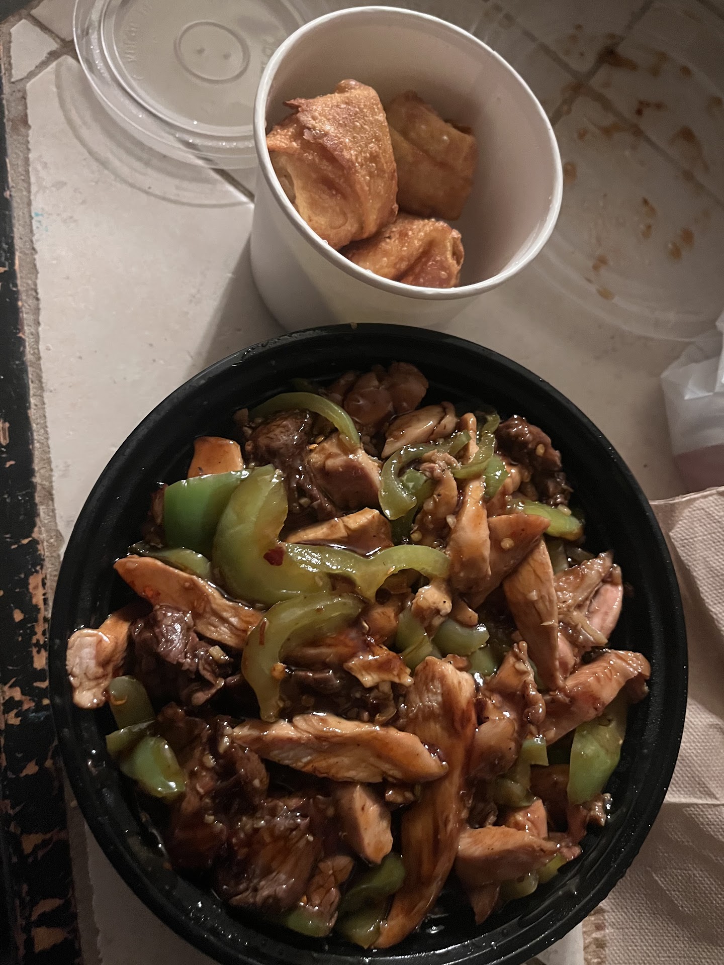 Chicken was old, not fresh Veggies were very soggy and mushy (after 5 minute drive).