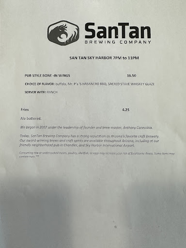Read moreCame here for breakfast and sat at the bar. The kind waitress looked very overwhelmed as she was filling in for the bartender. She wasn’t trained in the bar, so any mixed drinks were on hold. We ordered two double plays which came cold. I couldn’t eat my eggs because of how cold they were. They don’t have very many beers to choose from. Breakfast was $50 for two simple breakfast meals and two 16oz draft beers. I love San Tan in Chandler, but this experience did not live up to the expectation in the slightest. My fiancé and I came back for dinner (we had a 15 hour layover) to see if the food was better. We showed up at 6:30 and were told that from that point onward they only serve wings and fries. We were seated and I asked for a beer menu. We were handed an outdated beer list and we ended up ordering beer that was no longer available. The server came back and said our choice of sauce for our wings was out of stock and then in-passing, he mumbled that they close at 7PM. I was confused as the sign said they close at 11PM. NOPE! They close at 7PM. We decided to eat somewhere else. I won’t...