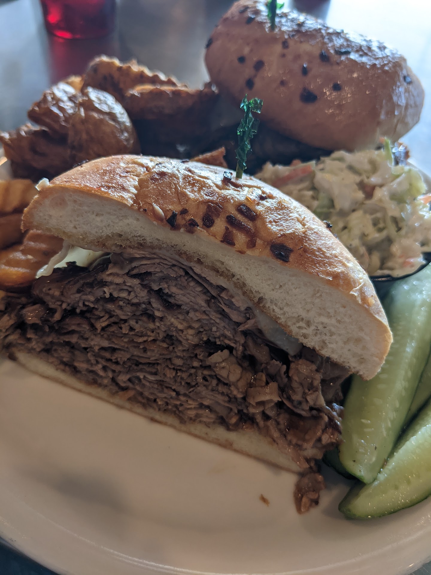 Read moreItâs good, but itâs not Shermanâs. I came here today for the first time; recommended by a friend. I started with the matzah ball soup. Very good. It was packed full of vegetables, chunks of chicken, and a dense ball of matzah. I wish there was more broth. I loved the rustic presentation and flavor. For lunch I ordered the Reuben sandwich â 50/50 corned beef and pastrami. Breaking it down: the meat was piled high; it was tender and juicy; and had great flavor. The cheese and sauerkraut were good, but the sandwich could use a touch more dressing. As for the rye bread it held up well; had good texture; and toasted properly. The sides were a mixed bag of tricks. Loved the coleslaw that was creamy, and had a good crunch with the cabbage. I didnât try the fries (home style?); so I canât say much about them. I do wish there would be an option for kettle chips, or a different style of french fries. The pickles⌠THE PICKLES! They were the worst part. They were limp, soft, and had no taste at all compared to dill pickles that offer a good crisp, and dill flavor. The server said theyâre homemade. I would ask that they try and do better. That was a shame putting those pickles on the plate. When I started this review I mentioned Shermanâs. Shermanâs is the benchmark for comparing delis here in Phoenix. Iâd drive to Palm Springs to dine at Shermanâs. I wouldnât say the same about Scottâs. Yet living here theyâre better than Chompies, and Jasonâs. And Iâd drive the distance to eat here. Other notes to add: the service was fine. Always there when needed, and very helpful. The bathroom was clean. And ample parking though I parked further away having missed this...