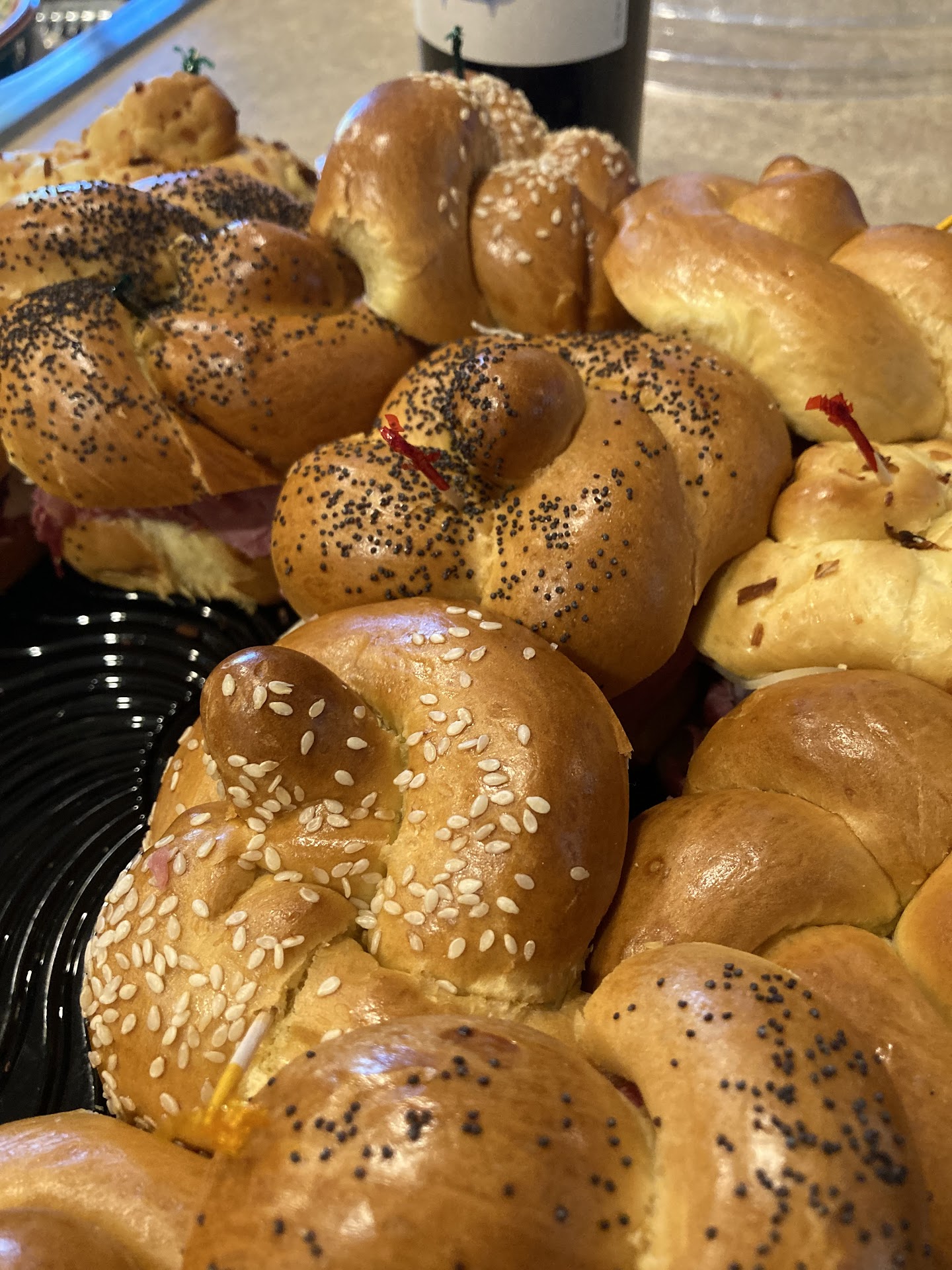 I walked in at 1pm today because I had heard good things. It wasnât as busy as I expected, but it was busy enough. I wasnât greeted by anyone when I walked in even though there was a man that looked at me at the cash register. I looked at what was in the deli, but had no idea what some of it was because nothing was labeled. I walked up to the cash register to get an order to go and ask what the balls of dough were filled with. Two ladies were up there but said nothing to me. One was putting in an order and the other stood buy and looked stressed. So I waited patiently. Finally, one of the girls asked me what I needed. There was a couple behind me who needed to pay their bill. The lady looked at them after I told her what I wanted and she said she was going to take them first. Ok. Whatever. So she took care of them and they asked the balls of dough were too. So when it was my turn to order I ordered and waited to pay, but the woman who rang me up told me to sit down instead and I didnât have to pay yet... ?? Why? No idea. The lady who came up behind me wanted two bagels to go and was told the same thing- that she didnât need to pay yet. It would have been much easier to pay after we ordered because when our food came out there was a line of customers waiting to pay their bills and of course the lady at the register wanted to let them pay their bills first. So, of course I wanted when I could have already paid and just walked out and been out of the way. While waiting I saw one of the waitresses pick up a bagel with her hands. Not that I truly care, but I think a lot of people would. She pushed the bagel down on the cutting board with her bare hands and cut it. It just seemed really unreasonably hectic in there. Maybe Iâll go on another less busy day...