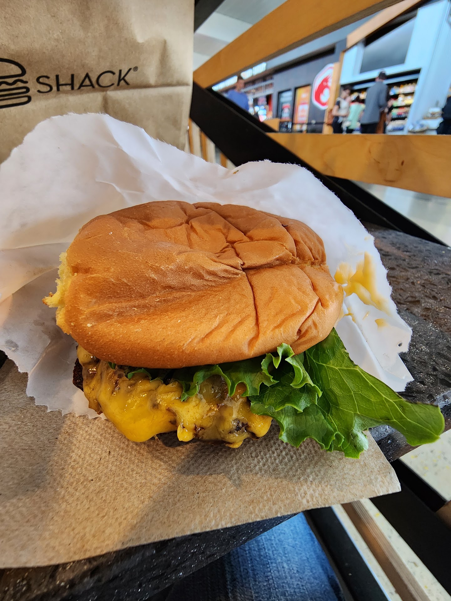 I came to Arizona for a graduation. While in the Arizona Airport, I decide to stop at the Shake Shack to get a burger, fries and a beer. The associate told me since I have an alcoholic beverage, I had to stay in there area.