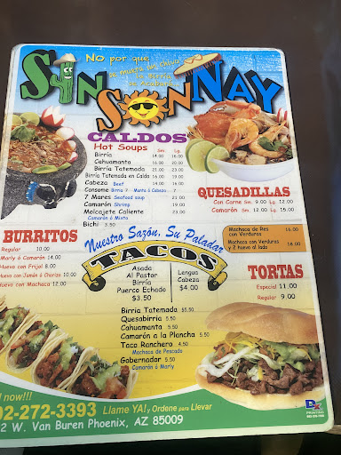Read moreApril/3rd/2022 I went to Sin Son Nay from the reccomendation of a friend, I went with my spouse and we got 2 Birria Tacos, 2 Gobernador shrimp Tacos and 7 Mares Soup (seafood hot soup) with fresh tortillas, and Horchata. They were very friendly, it seems to be a very popular spot and authentic, Delicious and worth every buck, their food is gas 👌🏼🤤