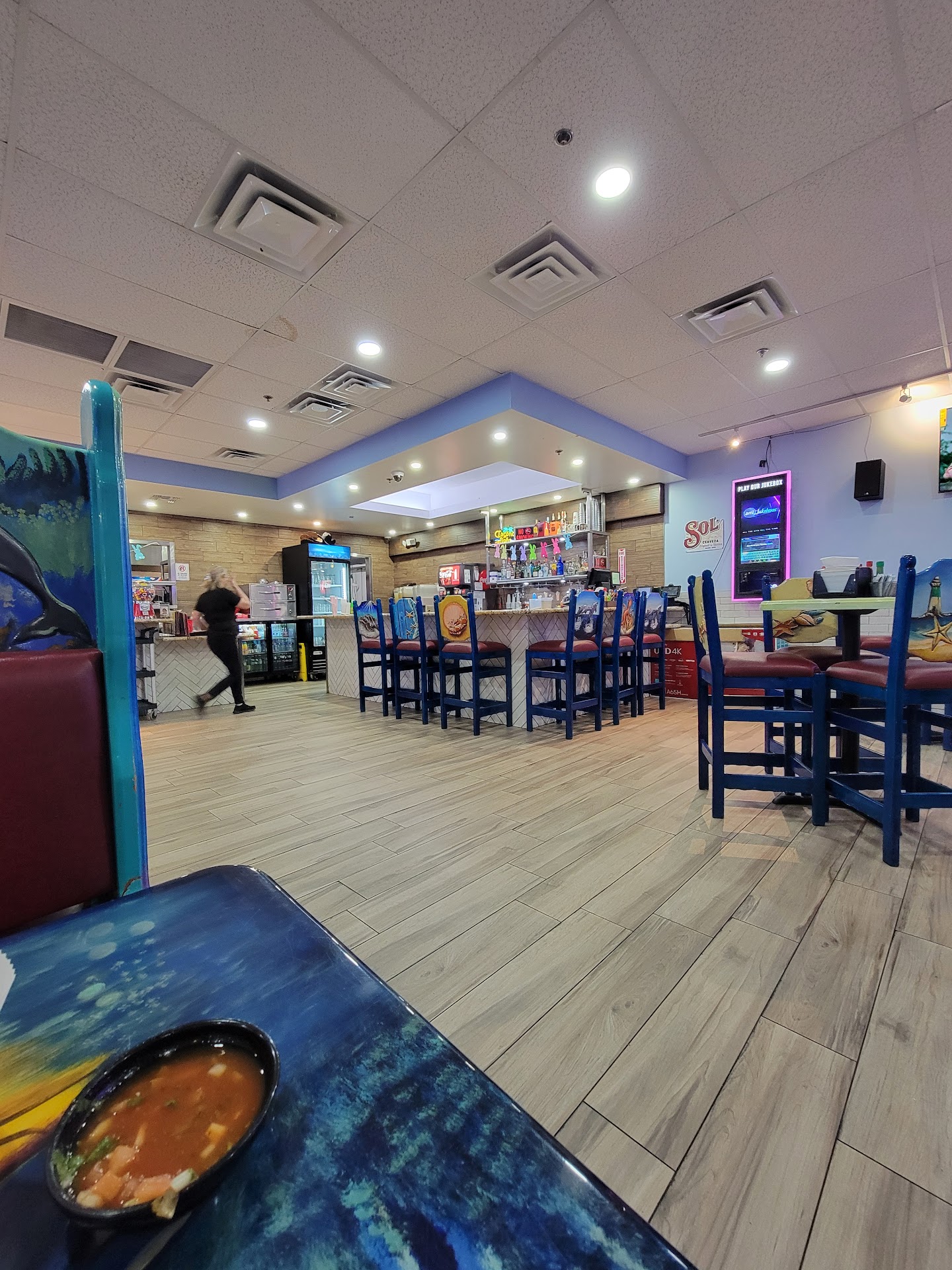 The place is spacious, sit-down restaurant well decorated with a beach/ ocean theme. It was very clean and well cared for. Someone put some money into this place.