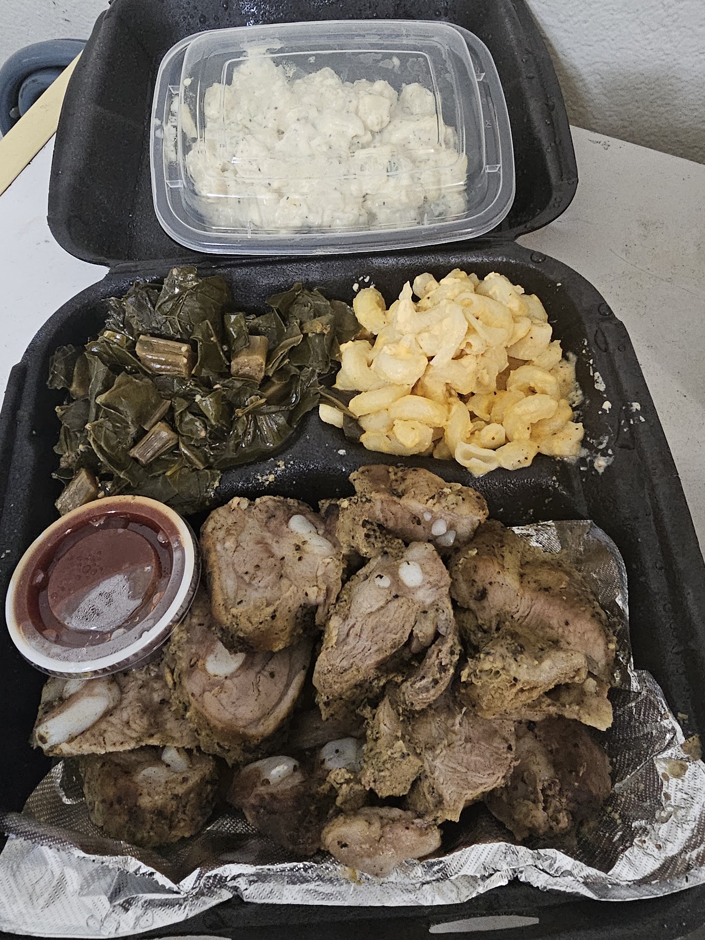 Read moreConfusing, I drove by and saw the vinyl wrap on the windows showing barbecue. Found a parking spot. I walked inside no one at The counter. Self order kiosk to my right, looks like I’ll place my order this way. Oddly enough, I see catfish, pasta, burgers and Three options of barbecue. And they were all huge portions to feed like three people and they wanted 40 $50 for them. Whatever happened to just a sandwich. So odd, so...