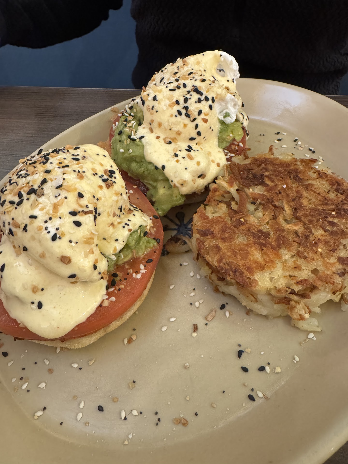 The Signature Pancake Flight offered a fantastic trio of pancakes, with the Cinnamon Roll Pancake emerging as the crowd favorite. Its rich cinnamon swirls, candied pecans and creamy icing made it a decadent treat that could easily double as dessert. The Smashed Avocado Benedict provided a fresh, vibrant twist on a classic, while the Ham Benedict III satisfied traditional tastes with its savory goodness. The Shrimp and Grits were creamy and flavorful, transporting us straight to the South, and the Bacon But Different offered a unique take on a breakfast staple, leaving us pleasantly surprised.