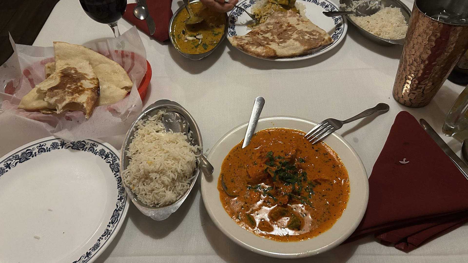 Read moreLooks very nice from the outside. Filled with Indian objets d'arts inside. Neat, clean, and strong spices not permeating the place. My table was the third from the front along the side where the buffet is. Actual cloth table covering and napkins. Small light(s) on every table. Flickering hanging lamps over each table on this side were annoying. The first person to take my order didn't seem to understand that I wanted one order to eat in and a different order to take out. The second person took my order and it all turned out fine. However, the food was disappointing. Very oily rice pea pilau with large chunks of green pepper. Chicken makhni pieces had gristle and cartilage in several bites. Waitress told me that this "meat is dark meat and the kitchen people can't feel the gristle through their gloves". The pastry for the vegetable samosa was actually tough in the corners, not flaky anywhere, and the pea and potato filling was smushy. The salty lassi was excellent. With the take-out order, they didn't include a naan that I ordered, which I didn't discover until I was already home. But they took10% off the bill because I mentioned the gristle in the chicken makhni - I didn't ask them to do it so I appreciate that gesture. My first time eating here, and I will try once more because the atmosphere is pleasant, and the staff are very friendly and courteous. By 6:15, the phone for carry-out was ringing about every 5 minutes, so there are many who like the food. If you're used to Indian food in Sterling Hts MI (huge Indian and Pakistani population) or D.C. or NYC, the meal tonight was truly no more than 3 stars at best. Worth a try and see what you think. p.s. the entree does not include rice. Jasmine rice is not on the menu. They had never heard of...