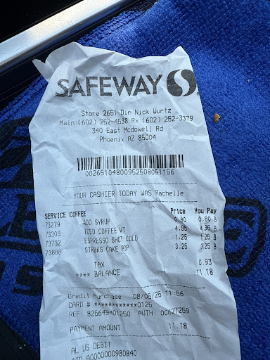 Read moreWalked into this Starbucks and I requested some cold brew they said they didn’t have any available She offered coffee with a shot of espresso and I asked if I could please have it at the price of the cold brew ? and she said no ! I let her know that it was an inconvenience because the cold brew should be ready and she said it will that it wasn’t I think it was very wrong for her not to accommodate a customer that was hoping to get cold brew at noon today and I’ve never been to a Starbucks before worse just not available. How can cold brew be available at noon? The female at the register didn’t seem too friendly either her name was OLIDA I believe, but my receipt says Rochelle I will post a picture. I think some of these employees inside of the Starbucks at Safeway need better customer...