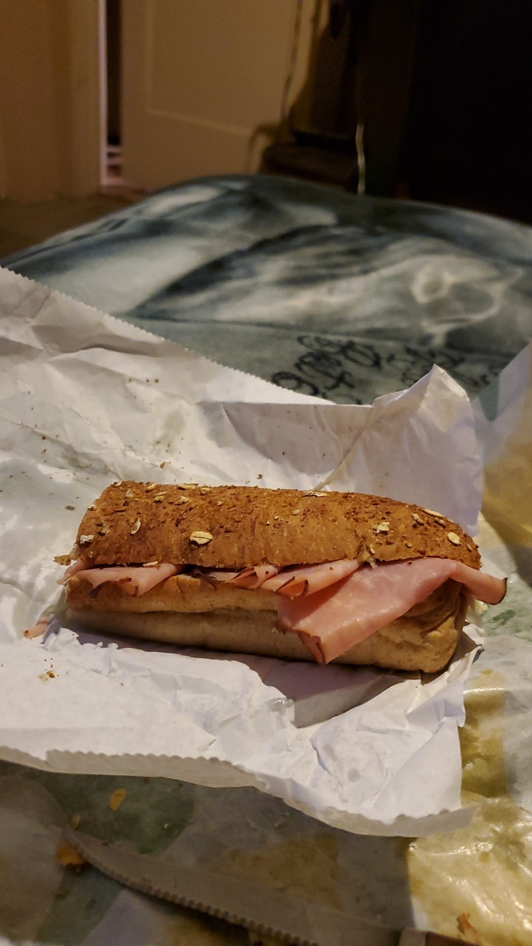 Read moreSo last night me and fiancé went to this location around 7:30pm for dinner. This place was filthy. There were two employees standing on there phone when we walked in when there was trash every where on the floor and on three different tables. No other customers were inside. The girl who took our order was just plain rude. She talked low and had a dumb look on her face the entire time. Before she even took out order she said "just you know we are out of chicken, bacon, teriyaki and swiss cheese" we said ok and still ordered. Even though she yelled it to us across the room as we were ordering from the app. Then after eating our meal we noticed the girl had barricaded the end of the dining area with chairs while she ate and facetimed on her phone talking about where her cat was. We had to use the bathroom and noticed a sign stating bathroom for paying customers only right? well we paid about 30$ for our meal and when my fiancé asked to used the bathroom this rude little girl said " its blocked off for a reason" like what kind of customer service is that?! I didn't get her name but she had piercings all over her face. We will never go back to...
