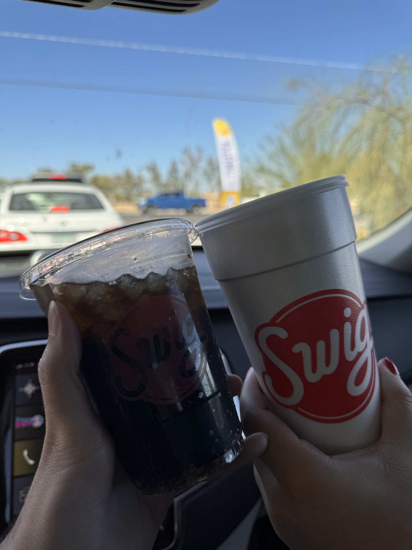 Read moreI am personally a big fan of swig, I am so happy to have something like this in AZ. Like the Dutch of soda shops. The unfortunate aspect of it that makes each visit a little unwelcoming is that the working conditions of the employees and flaw in the line tending. The girls working each location that I've been to (PV & Gilbert) tend to not be enthusiastic or welcoming, which I'm willing to give grace for bc it's hard to put on a face sometimes, but it's like every time :/ and they consistently mess up the drinks. which brings me to the fact that there's usually 1 girl outside in an Arizona summer while there's a good line of people and they switch out and a new person doesn't come back out for a good few minutes therefore backing up the line even worse. I feel like there is a lack of urgency with taking orders. It's important to provide things to assist the employees physically well-being when it's so hot. Personally, I think it's a domino effect. These ladies are out in the heat for too long without resources (mist fan, hats, cooking vest) , they can't provide exceptional customer service or put forth a little more effort. If I'm wrong about the employee conditions, I'd at least hope there's a change in...