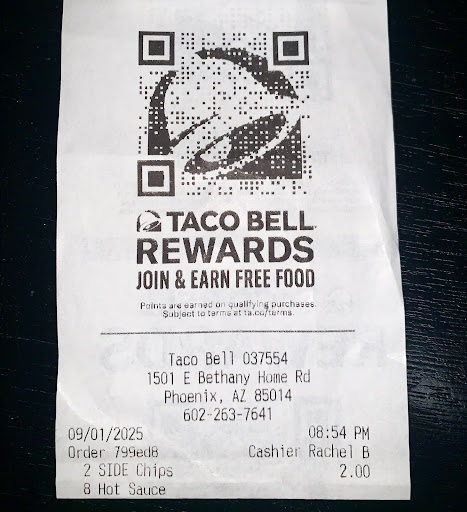 Read moreThis was by far the worst experience at a fast food drive thru that I have EVER had!! I even sent an email to Taco Bell corporate but of course never heard anything back... I placed an online order and went through the drive thru for pick up. As I’m driving away, I checked my food and there were a total of 4 items missing! I go back through to let them know, they gave me a bag when I got to the window and told me that all of my items should be there. I notice there is still a burrito missing so I tell them. They asked me if I could pull up to the waiting area in the front of the restaurant and someone will bring it out to me. After over 10 minutes of waiting, nobody brought the burrito out, so I had to drive through A THIRD TIME just to get the rest of my order. If I had not already paid for everything in advance, I would have just left. My quick trip to Taco Bell somehow turned into a 30 minute waste of my time!! I’m not sure who manages this location at 16th st and Bethany home road here in Phoenix, but they are doing an awful job. What happened regarding my order was completely unacceptable. They should really have a better system for online orders to make sure the entire order is filled correctly. I understand mistakes happen sometimes but to make me have to go through the drive thru 3 times is simply ridiculous. I used to come here every so often but now I feel like I can’t because I don’t want to go through that...