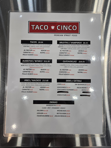 Read moreIf I could give it more starts, I would! Taco Cinco absolutely hit the spot. I ordered the carne asada burrito, a pastor taco, and a nopales taco, and everything was fresh, flavorful, and perfectly cooked. The carne asada was tender and juicy with that perfect char-grilled flavor, and the burrito was packed just right…no soggy tortilla, just great balance in every bite.