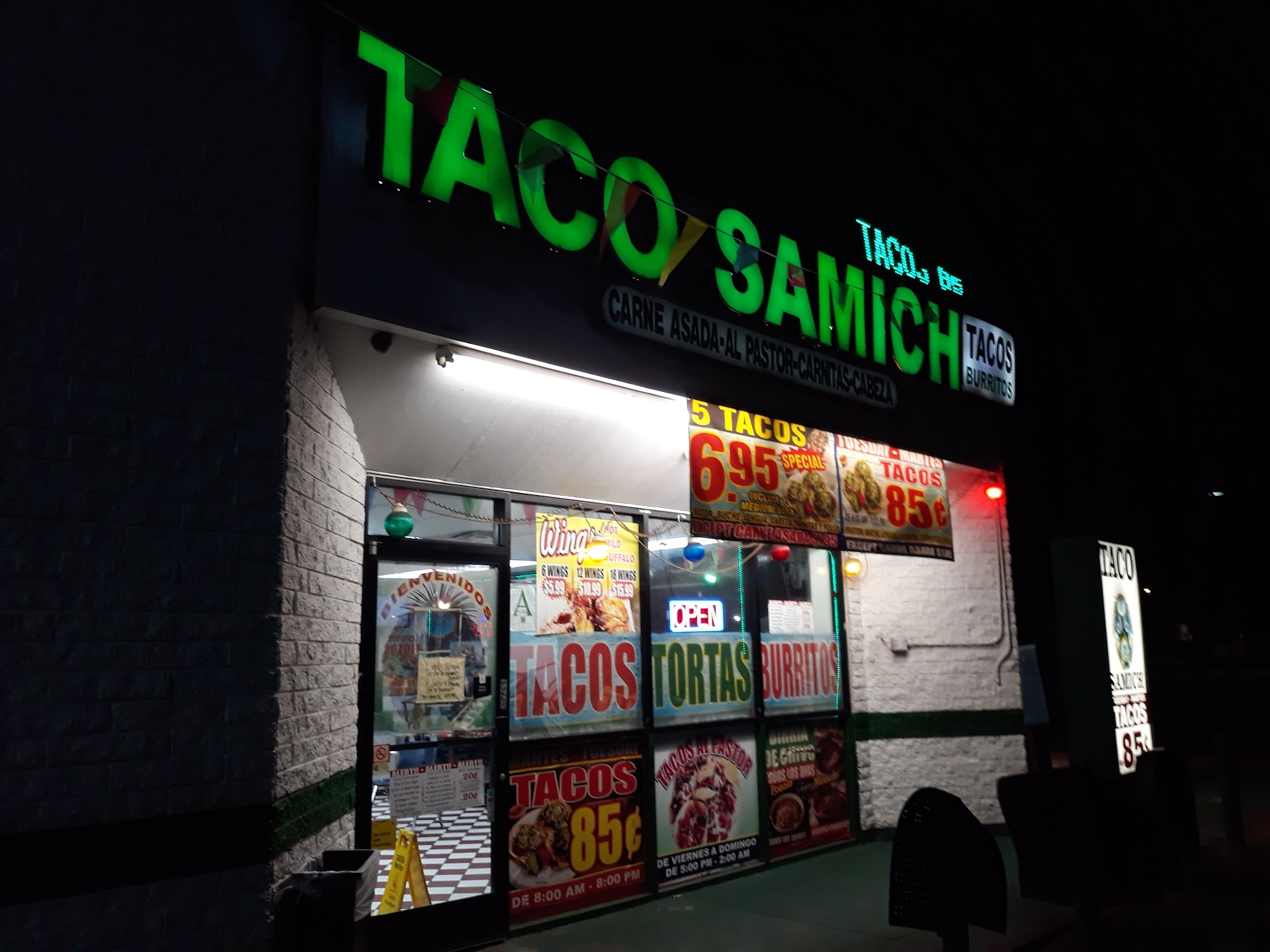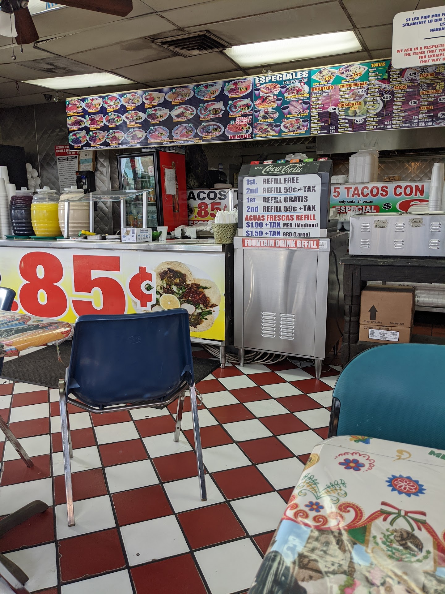 Read moreAs far as the restaurant goes....it is NOT cared for AT ALL.... stacked broken tables and chairs inside... Granted, it is in the ghetto....but this is definately a "To-Go" kind of place. The street tacos are AMAZING and are only .85 cents on Tuesdays ($1.30-1.50 other days) and it is over-all priced SOOOO much better than bertos chains. Most burritos are $7-8 and super nachos were $9-10 bucks and looked really good. The gals working behind the counter were friendly and quick. Only the one taking orders spoke english but, that's ok.... This place is like a lil peice of Mexico! Wish they had a drive thru or walk up window so we didnt have to see the inside lobby (or get out of the car) but I would probably go back for authentic street tacos again.... I fed both my teenage boys an easy dinner for 10...