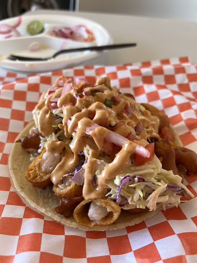 Me and my wife love coming here on Saturdays and getting a bunch of tacos. It doesn't look like much, but it will be a real restaurant hands down. There is an inside area to eat in, it's got several tables and chairs. The shrimp tacos are really good as well as the fish tacos. They do give you extra toppings on a separate plate wrapped up if you decide to take it and go. My spanish is not great, but I was able to order just fine. There is also a lady there that speaks good English and has always been there to help. Whatever you guys are doing, keep it up the...