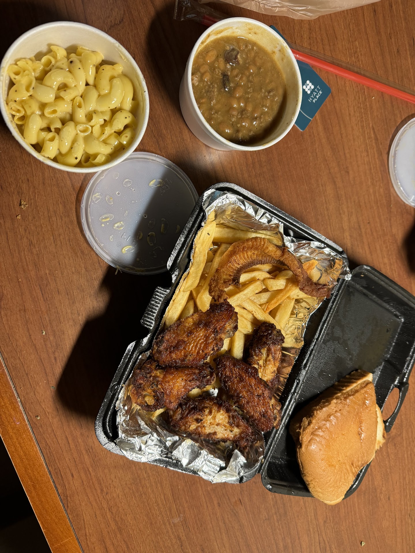 As I savored the catfish, I was struck by its perfect seasoning, which brought out the natural flavors of the fish while adding a delightful kick. Accompanying this dish was the potato salad, crafted with a mustard base that was just the way I love itâvibrant yellow and deliciously tangy. Each forkful was a reminder of summer barbecues and family gatherings, evoking a sense of nostalgia that made the meal even more enjoyable. The wings, fried to perfection, were crispy on the outside and juicy on the inside, adding to the delightful experience and leaving me craving more.