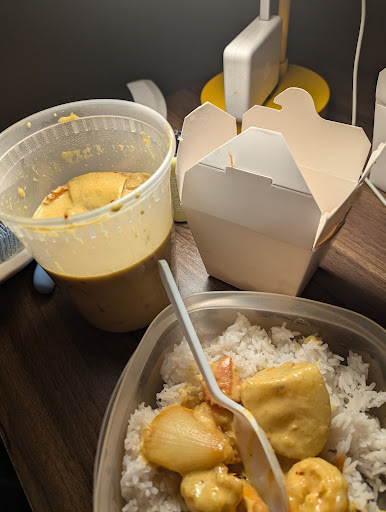 Ā Ā Ā Read moreCalled in to order as their site didn't support any requests for dishes, which is understandable especially as those modifications can get complicated for a busy restaurant. It was totally fine to remove the chicken, tofu, and bell pepper from the Mee Krob (I stated I have no problem paying full price) and we ordered a shrimp yellow curry and extra rice. With 4 cans of soda an extra side of jasmine rice it came out to about 50 bucks. The drinks made up like 12 of that, but it was still cheaper than the hotel.