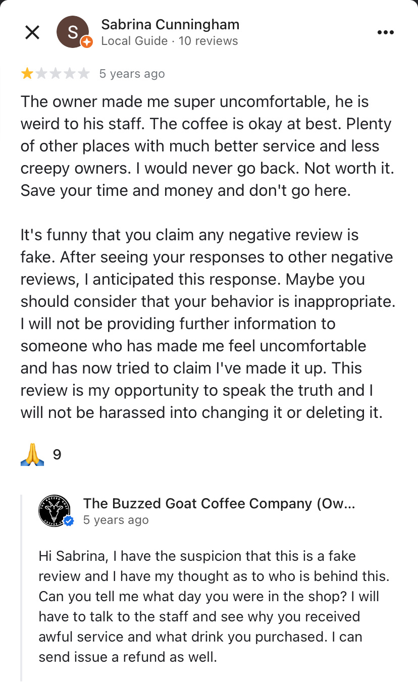 (Edited as the owner has now replied and dismissed my concerns. This is my real honest experience at this shop. Go and look at some of the other one-star reviews and take a look at how this man talks to people. I think thatās telling enough. You will find Iām not the only one who had gross coffee and unfriendly service. )