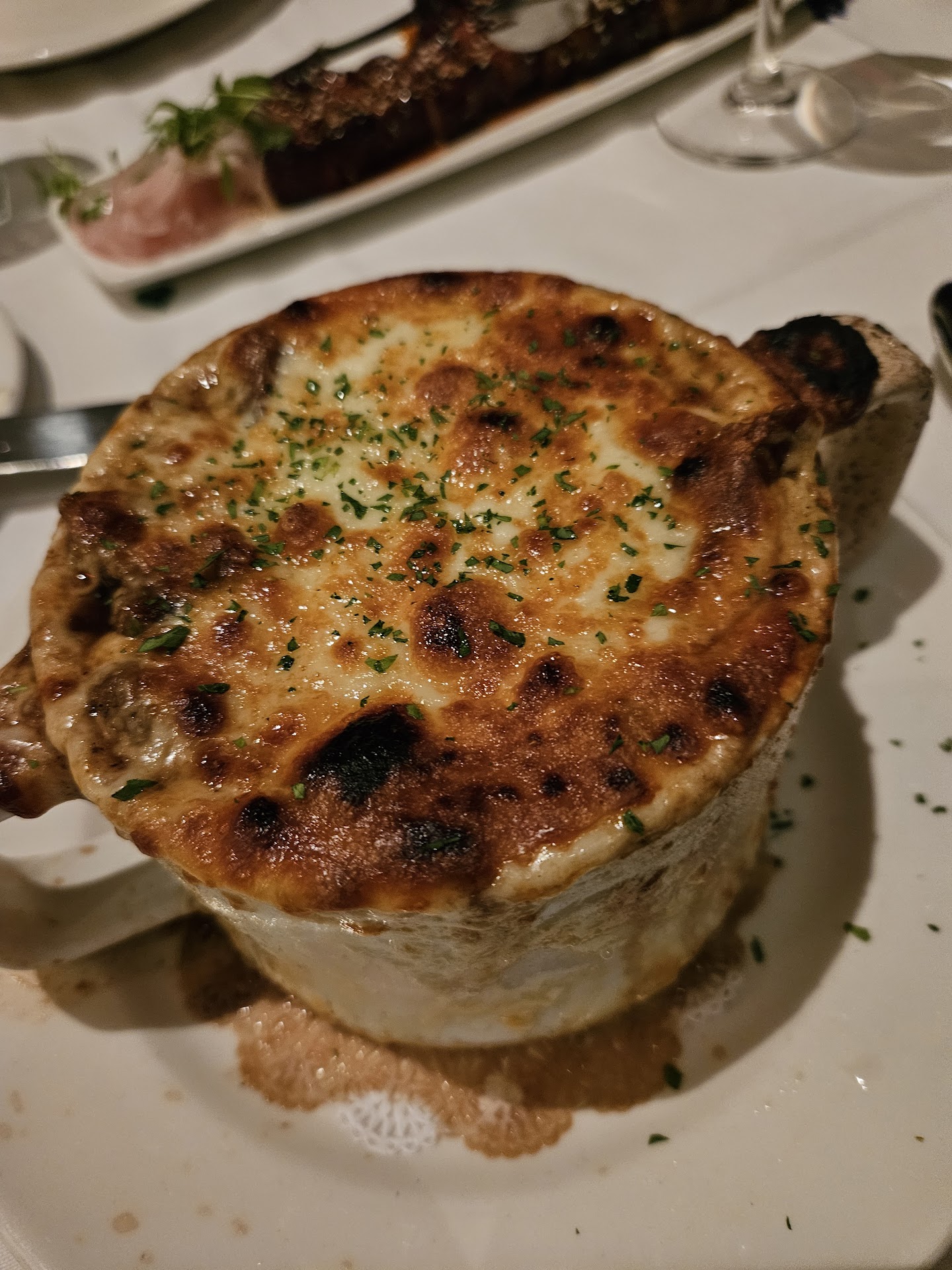 For the main course, everything was cooked exactly as it should be. The steak was spot onâperfect temperature, great sear, and full of flavor. But what really stood out was the potato au gratin. Iâve had plenty of versions of this dish before, but this one was differentârich, cheesy, and cooked to just the right texture without being overly heavy.