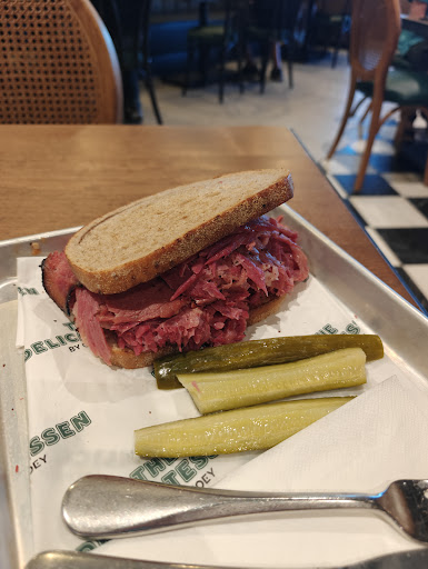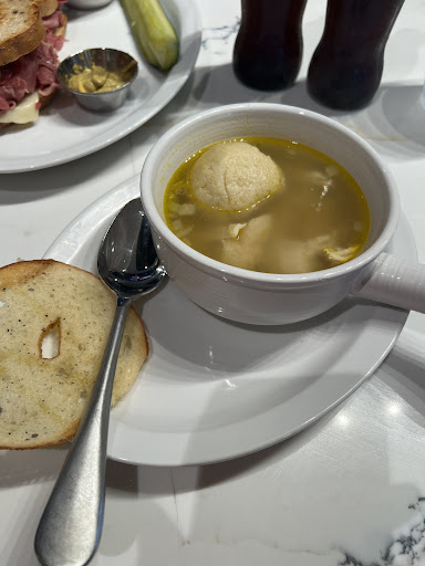 Came here for lunch today. My first time. What caught my attention was an online ad. I’m always looking for a great deli. So enter to find a host station that separates people ordering bagels, and those ordering from the deli. A bit odd, and confusing. Approaching the registers there were several people trying to view the menu and decide what to order. I stepped up, and had a few questions. Ordering a cup of matzah ball soup — no to noodles. Then ordering the Reuben sandwich (regular). Was rye bread okay? Strange to ask, but yes. If not rye, then marbled rye. I’ve never had a Reuben sandwich any other way. For the side I chose the creamy coleslaw. They have no fountain beverages. A bit awkward getting the bottles of Coca Cola as the case was on the other side of the register. One pays for their order, is given a number, and then find a place to sit. I chose a seat at the novelties bar where they were undergoing training for making shakes and other creations. My order came all at one time. Being asked if I needed anything more… yes, some silverware for the coleslaw. The soup was a mix of good and bad. The matzah ball was good; as was the broth. The vegetables - onions, celery, and carrots - were chopped finely. As for the chicken it was breast meat, and dry. I picked the large chunks out and set to the side. I would have liked more broth, and bigger pieces of vegetables. To the side was a bagel chip that was nice. The coleslaw was nice, but very dense as the cabbage was chopped very fine. The pickle was big, had good flavor, and a nice crunch. As for the sandwich, I’ve never had a Reuben sandwich with a side of brown mustard. I asked if they had the proper dressing, and they weren’t sure; but would check. They came back with what they had as Thousand Island dressing. Not the best dressing. The sandwich itself was small. The meat didn’t have great flavor, wasn’t very tender, and seemed small in portion. In the photos you’ll see the large toothpicks. What that is for I wouldn’t know. I boxed my leftovers to go. The Cokes… the Cokes… made with real sugar (Mexico). There was no fizz, and tasted flat. Almost $5 a bottle. The restaurant is clean and spacious, and well lit. I did not use the restroom, and cannot comment on the conditions. Parking is mall parking. I doubt I’ll ever return here. There’s better delis to go to. Scott’s Generations and Miracle Mile come to mind. I’d drive the four hours to Palm Springs or Palm Desert to dine at Sherman’s Deli & Bakery. Chef Joe might want to take a field trip to see what’s lacking in his Delicatessen. Total after tax: $38.14. The $6 tip was given thinking service was going to be good. Even that was too generous. T.I.P. = To insure...