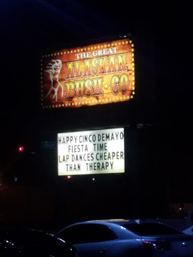 Read moreAs a former dancer and strip club lover I didnât feel welcomed here. Came with a male friend out of curiosity due to the name. Bartender wasnât knowledgeable. Asked for a spirit upon which my friend and I were told was not there. My friend was looking at the bottle. I told him let it go. Dancers werenât dancing, simply sitting around and when they did it was rather lack luster. Asked one of the girls where I could get singles (itâs not always at the bar depending on amount) but seemed to be a language barrier. The highlight is when security thought I inappropriately touched a dancer and wheeled me (the chair had wheels) from the stage to the exit. I had to get up and promptly tell him I could see myself out. I have never been treated this way at a club before. It was almost comical! Mind you no one else who was there including the dancer understood why he took those actions. My friend confirmed this by speaking with others there. My friend thought it was a joke at first until he realized I wasnât coming back in. Security or whomever this man was because I wouldnât expect this from an owner; could have simply asked me to leave instead of being physical with me. Seems like he just wanted to be a bully. I promptly went to Dirtyâs which is a few minutes drive a way. Much better environment, variety in girls, girls are actually dancing, music is more enjoyable etc. The Great Alaskan Bush company is not great at all. Not women or people of color friendly....