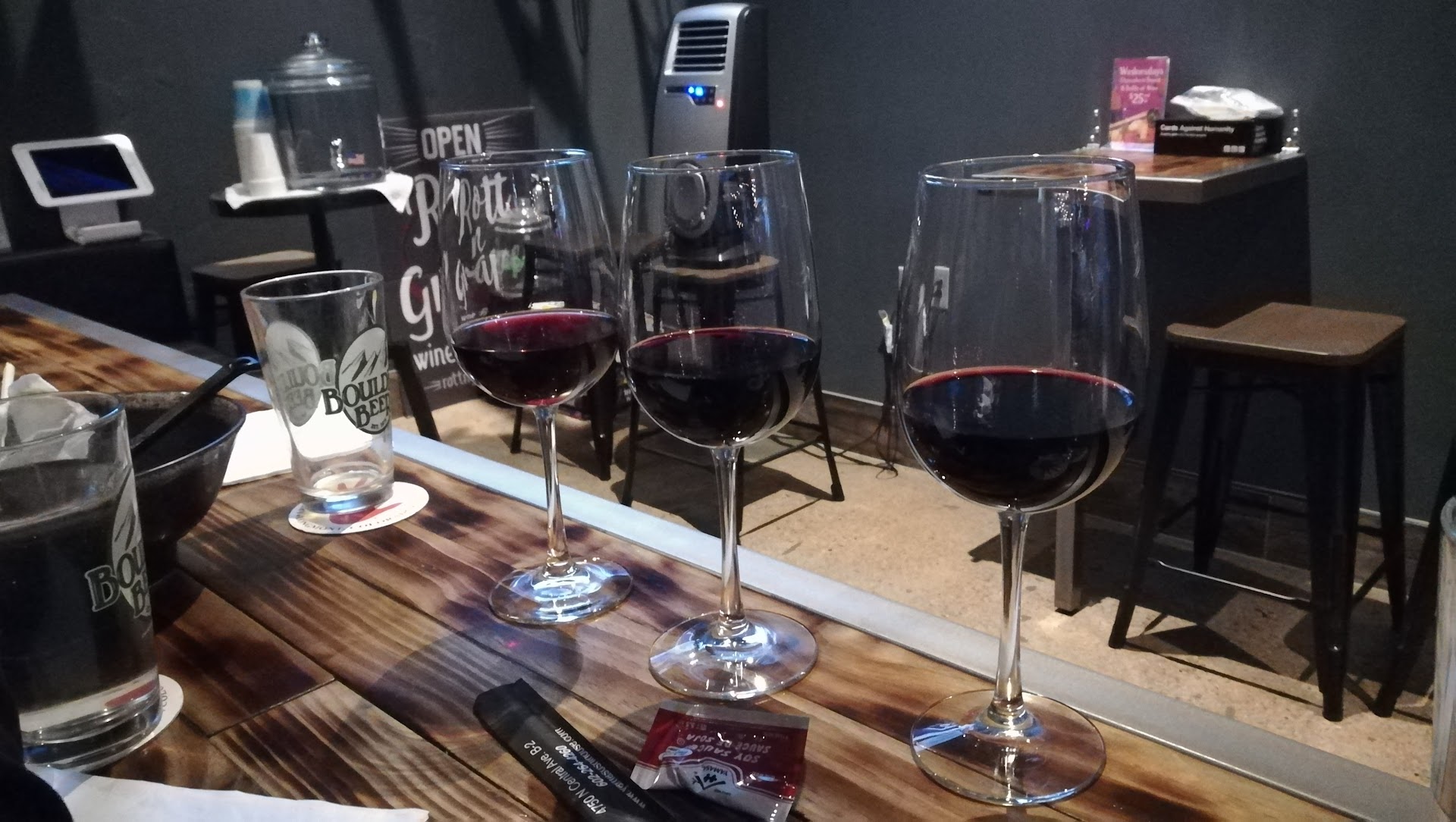 Exceptional Service, welcoming environment, thoughtfully well crafted menu, and a hell of a lot of fun. This place jumped at us for a late lunch/early happy hour due to its variety of wines and tapas heavy menu and it began to exceed expectations from jump street. Larry immediately recognized he didnโt recognize us and invites us in for a quick run down of the perfectly sized wine, draft, and bottle/can beer options while displaying his knowledge, genuine hospitality, and interest in our likes. From there it was like being family and even realizing we have some common associates from both long ago and recently.