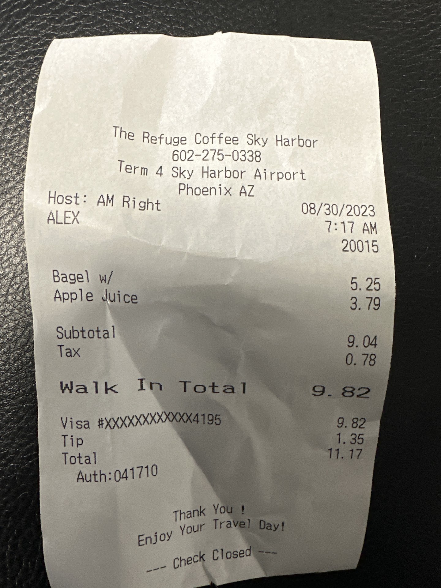 Ā Ā Ā Read moreStopped by The Refuge Coffee Food and Wine while waiting for a layover flight in Terminal 4 of Sky Harbor Airport in Phoenix. There was a very long line, and I had just gotten off a midnight flight from Anchorage, so I was very tired but desperate for caffeine. I decided to wait out the line since I was waiting for a flight anyway. To my surprise, I was at the front of this long line before I could even decide exactly what I wanted. I got my coffee very quickly, and was super impressed. More than anything else, I appreciated the friendliness and smiling face of the man behind the register. He even upgraded my coffee to a large when I told him I'd been flying overnight for the past 8 hours. Five stars...