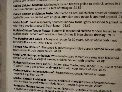 Oh my...as a top Google Restaurant reviewer I post honestly. So here it goes.. We were capping off Mother's Day with stopping by this restaurant of which I had never dined at previously but my date had and he said it was one of the best. Being Mother's Day and no reservations, I asked my date to go in and check the ability to dine comfortably. I gazed at the area around the establishment and found it to be nice and neat. My date returned saying there was no waiting and could seat us immediately. I was greated with smiles and politeness. The atmosphere was romantic and comfortable. The interior of the establishment was wonderfully maintained. While being escorted to our table I noticed that the diners were almost finished with their meals and thought it was perfect timing as the dinner rush was over. Our waiter gave us a moment to sit comfortably at the table before he approached us. Perfect. He greated us with an amazing personality coming thru. Asked if we knew what we would like to start with water or specialty drink. I chose a speciality drink, my date had a glass of beer, I think he had spotted the Jambalaya on the menu. Very quickly we had ice water and our drinks set before us. I noticed tables were being bussed with very little noise around us. Perfect! Our waiter asked if we had had enough time to look over the menu or if we needed some more time. Perfect! Our waiter turned to me first and asked what I would like. Perfect...women first! I replied, the Buffalo Chicken Breast Tenders, Couscous and French fries replacing the blue cheese with mayonnaise. He wrote it down, smiled, nodded and turned to my date. Our waiter asked what he wished to have, yes, I was correct, he had chosen the Mardi Gras Jambalaya with a side of Brussels Sprouts with Marcona Almonds. Our waiter nodded, smiled and left with our food order to the kitchen. We sat enjoying our drinks. I noticed our waiter was coming back towards our table, he had come back to let us know that another server would be bringing us our dinners as he was getting off shift and we would be in good hands! Our next server brought out our plates to our table. I noticed he had no trouble touching them. Humm to me that was not a good sign as he placed them before us. Okay for the salad plate not to be hot. He asked if there was anything else we needed and I replied not yet. The dinner rush was over. The plated food looked thrown on the plate,okay, I was hungry and hadn't eaten since breakfast. I chose to pick up a French fry with my fingers..barely warm. I put my knuckle into the buffalo chicken breast tenders..barely warm. The Couscous was adequate nothing to write up about. My date asked me to try his Jambalaya.. barely warm and his Brussel Sprouts with Marcona Almonds..well they looked like almonds but tasted like they were peanuts. I felt very disappointed in his thinking that this was going to be a marvelous place to bring me to dine. What was I thinking? I caught the eye of our new waiter/server and politely gestured him to approach. He came forward and asked if there was something wrong. I replied back in the same tone he had used..Yes, I said..please take it back and ask the chef to fire two new plates. He quickly removed my plate and my date's plate and walked away. He returned within a few minutes..what? Fire a new plate does not mean hold the existing plate under the heat lamps for 3 minutes. Oh my. He put them down in front of us, asked if there was anything else to which I replied I would let him know, he walked away. I was a bit taken aback about the perceived attitude by the server. I was trying to remember the prices on the menu. I picked a few french fries off my plate with my fingers and immediately turned to the busboy to come over. I handed HIM the French fries and asked if they were hot, no. Bottom line..Free dinners. MGMT did not apologize in person. No voucher to try again. Server/waiter tipped $10.00. At least he brought out the plates...nothing more. Not QUALITY DINNING. Bribe me..maybe! I give...