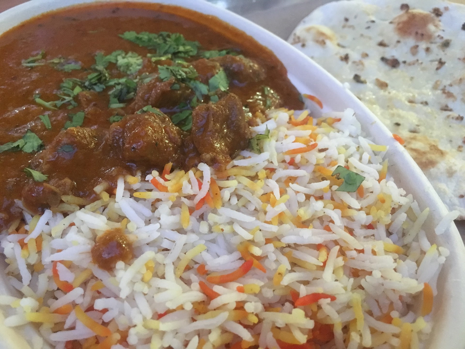 I ordered the chicken masala and wow. So delicious and it stayed hot during my short commute. I also got one of their strawberry slushy drinks and it’s so good!