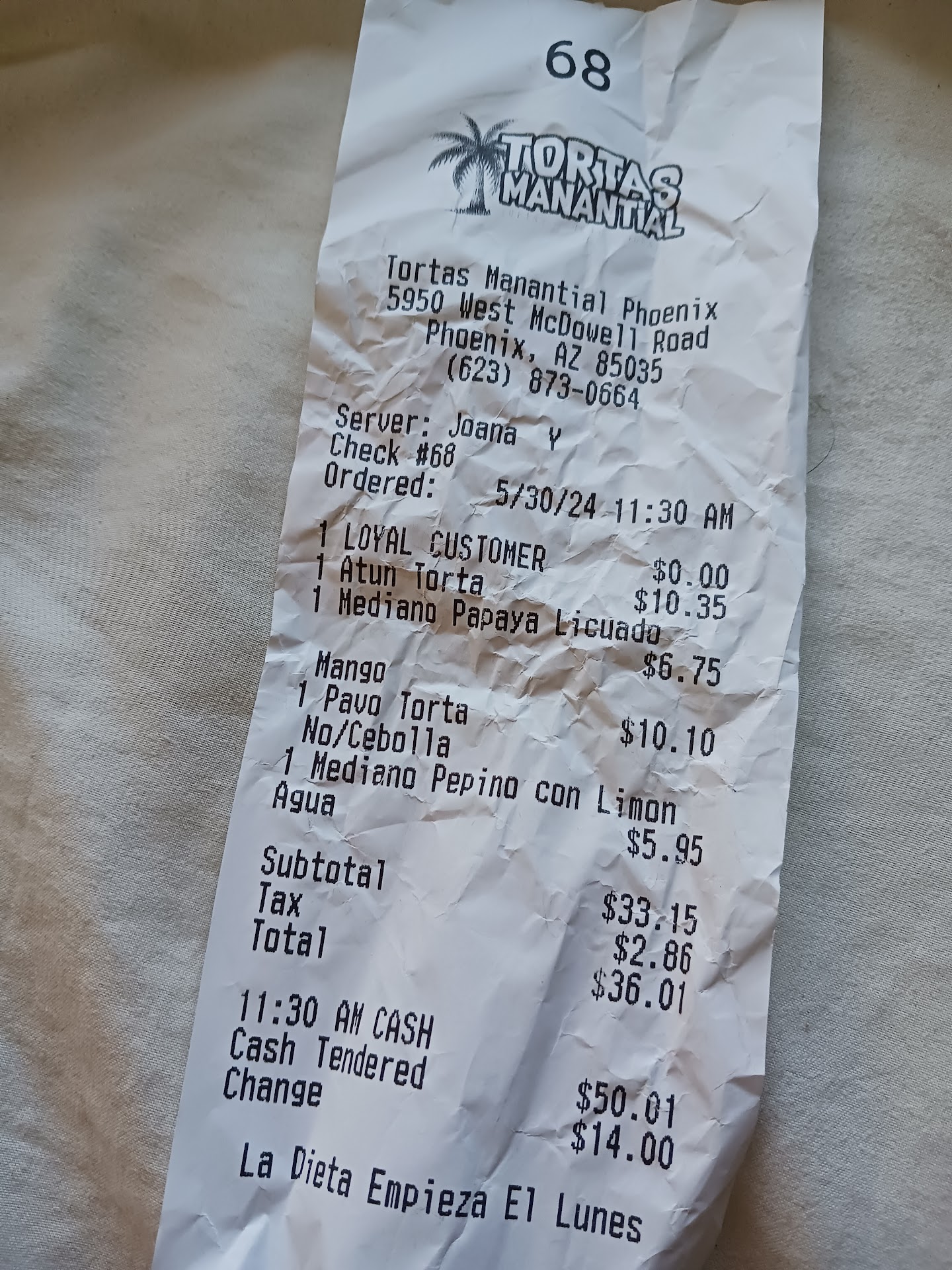 Read moreI went to the Avondale Blvd and Buckeye Rd.location and the Horchata tasted like it had gone bad it was BAD and bought the pico de gallo and the Escamocha looked nothing like the pictures. The pico de gallo had no watermelon, sliced coconut and mango. The Escamocha had no banana and in both the fruit was hard and stale. I won't be back to there place. 1/14/21 response- I just saw your response and comment and I don't know why you checked in all your locations when I wrote on the comment that I went to the one on Avondale and I first brought this awareness to Tortas Manantial through Tortas Manantail Instagram account and wrote about what happened with the Horchata had gone bad and they were selling it like that and we didn't notice till we got home to try them and the fruit wasn't good this was on a Sunday Morning a few weeks ago and who ever is in charge of the Instagram account offer to give me a refund and I declined, because I wrote that I would take it as a lost and just wouldn't be back, so they decided to delete my comment on Instagram. A company should know that not every customer will have a good experience or service and that negative comments doesn't mean an attack on the business it's just to better your service to the customer. I just wrote my experience here after the one on Instagram got deleted or taken off whatever you want to call it. I am just sharing my experience and for you guys to be aware of what is going on and I am being nice about it and not writing bad things here. Take care and...