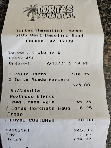 First time visiting the 51st and Baseline location due to the great reviews this place had. Unfortunately as soon as I approached the counter I was met with an attitude by a younger female. She def didn't want to be at work on a Saturday afternoon. I proceeded to order 3 tortas and two drinks. Made one modification to my torta - no onions. The order was bagged up and noticed she forgot a bag of chips. Tried to get her attention and she straight ignored me so had to call her mother (I assume) over to ask and she gave me the chips they forgot to pack. Upon getting home noticed my torta wasn't correct as they didn't include anything else like the mayo, lettuce and tomato (was only the torta bread, carne asada, and avocado).