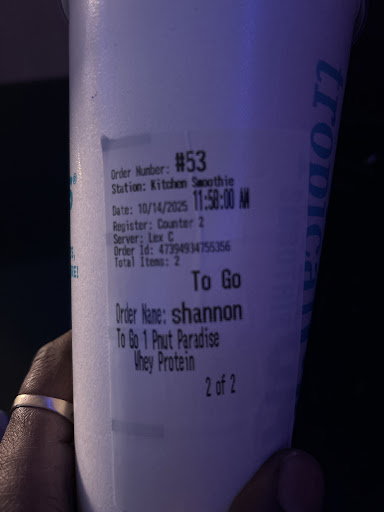Read moreI go to this place all the time at least once or twice a week I get the egg pesto peppers with feta cheese wrap I am a pescatarian but I do still eat eggs and feta cheese. Today I went before work and ordered the same thing along with a peanut paradise which I love now by mistake, I normally get a fruit paradise point but one day I went Lex C gave me peanut paradise instead by mistake, good thing I didn’t have a peanut allergy I would have been in the hospital, but I have been getting that cause it has more protein. Well I order the same thing by Lex C decided again she want to give me what she wanted to which was a chicken pesto spinach egg wrap. I got to work and got busy so I was unable to enjoy the wrap until all my clients cleared out. Once they did to thought nothing of if and began to chow down I took a few bites and and was fine I went to dip my wrap in the tomato Sauce and there was chicken i immediately start to vomit. After a few minute of that I took of across the street back to the store. Eyes still watering still feeling like throwing up which I did a few times in there parking lot. They told my they can remake and it was an mistake. Then Lex C comes out with no empathy and tells me I’ll be fine, at this point I’m pissed off. I don’t want more food just give me a refund. Original the total was about $12-$13 for my wrap and my smoothy she said here a refund and gave me a receipt for $32 say it will go back on my card. Which was strange because I paid a portion in cash. I notice the receipt was for a totally different customer with totally different card number, meaning she refunded some other customer my money. Look at the images I shared. She said the manager would be in soon, but I had to get back to my jewelry store to meet clients, so I took the receipt and left still throwing up one I got back in my truck . This is the 2nd time Lex C has messed my order up this time it made me sick. That will be my last time going to this place. Lex C does not pay attention she just give the customers what she feels is suitable....