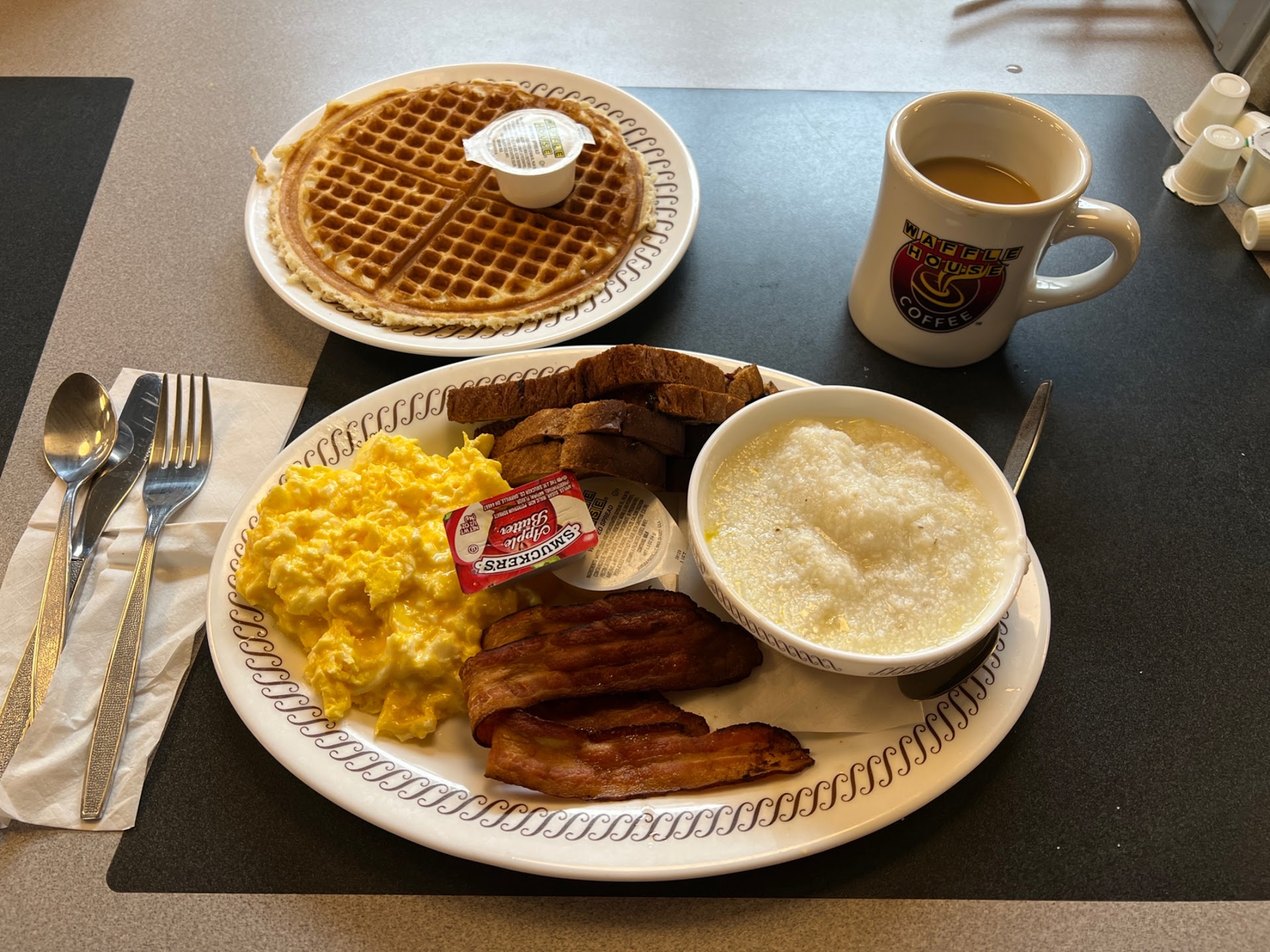Read morei have been waiting to go to a wafflehouse for nearly 22 years of my life. every night in chicago i wake up in a coldsweat at 2am, reaching out for a warm, crispy pecan waffle with grits, eggs, and of course toast with the faint background noise of a fight going on. but each time i fail, and have been in a deep depression since. when we walked into this waffle house i almost wanted to drop down on my knees and cry. it was so beautiful, so empty at 8pm almost as if they had reserved the entire restaurant for me. joceline served me with the UTMOST class and was attentive during my stay at the sacred waffle house. they even gave me a waffle house hat that i will cherish for the rest of my life. i will bring my waffle house hat back home with me make all of my chicago peasants friends jealous of my journey. i have already declared in my will that i want to be buried in this wafflehouse hat. when i looked at the menu i almost couldnt believe my eyes. the all star special was only 12.50$ instead of the normal 16$. of course this was a limited time offer despite it being on a printed menu that has probably been used for the past 12 years, so naturally i got emotional once again. i was ECSTATIC to learn as well that i could substitute my boring white toast for TEXAS TOAST. we weren’t even in texas, i am still in awe they were able to transport such a commodity so fresh. the meal was excellent. it was warm, fresh, and made with all the love arizona can offer. i dined like a king, i got 5 star service from joceline, and can confidently declare i WILL be coming back. until next...