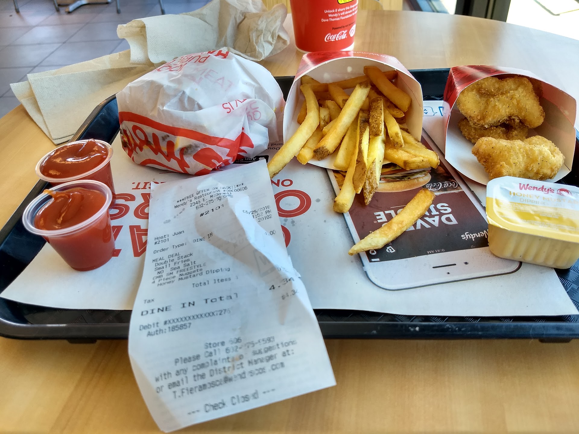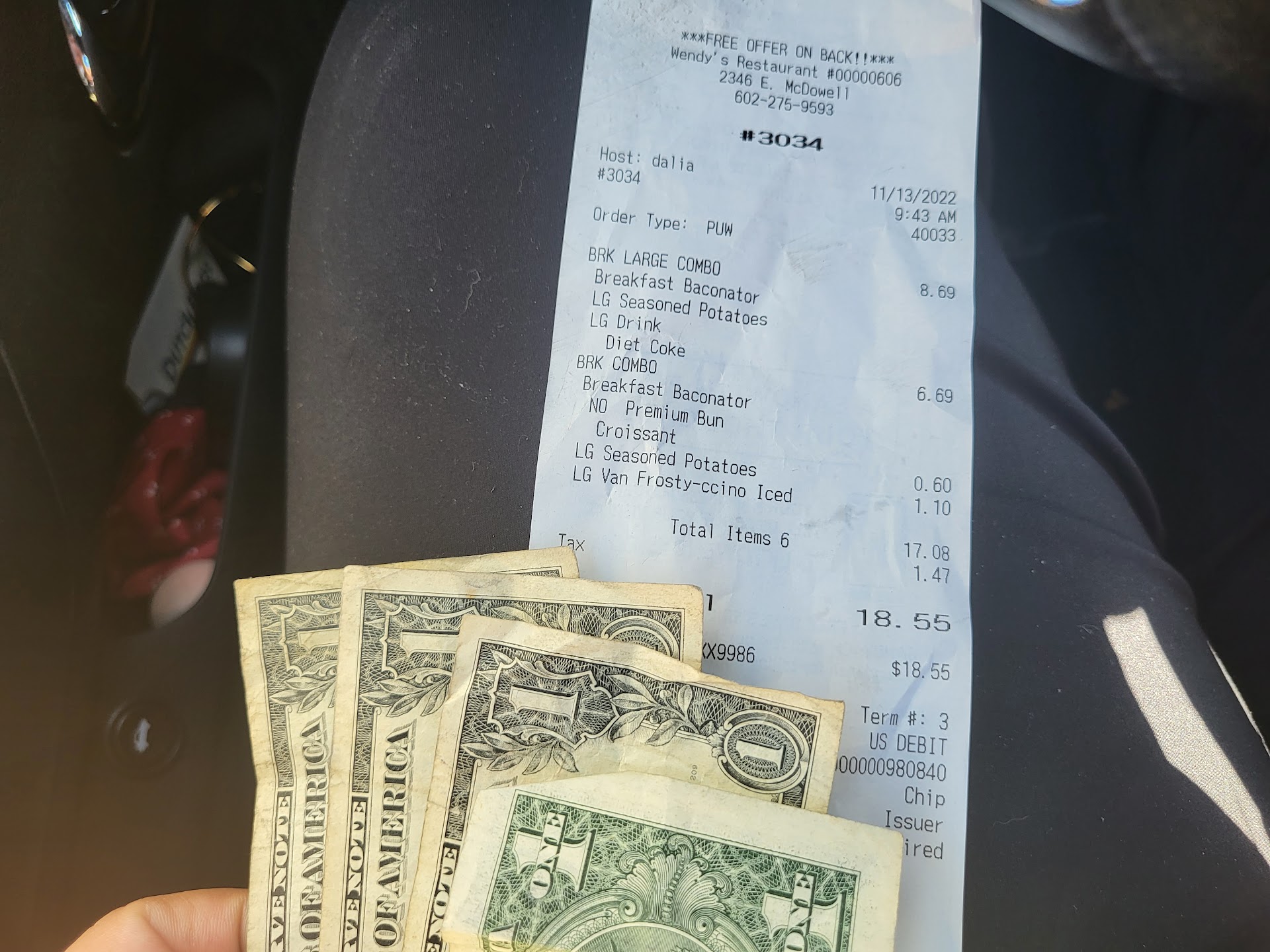 Drove thru drive thru like i always do at this location, usually is a breeze, ordered my food, they offered me a cookie, i declined, when i got to the window, i was like great drive thru they offered me something more let me go out of my way and add on cinnamon roll pull aparts. So i mentioned it to the drive through guy he then tells me he can’t add anything on he says his manager doesn’t like that, said i would have to drive all they way around, i said ok that’s fine, then mentions to me to pull into the spot to wait for my food ( so you mean to tell me i need to wait for my food and also drive around in a inconvenient circle to reorder something and wait? Additionally.) mind you there was no vehicles behind me. So i said well can i speak to your manager? He speaks to someone and then rudely sells me the cinnamon stuff. Then tells me to park, as I’m parked he brings my order nothing is correct no drink no fries i mentioned that to him. And he gets rude and says he needs to go look at my order inside insisting that i was lying. I walk in manager fails to help me just refunds order doesn’t care why I’m upset. Secondly i initially didn’t get a receipt. And they didn’t want to give me one with my refund. So sketchy. Horrible service today so better it’s Phoenix i can go anywhere to eat. I choose this place. Next time I’ll make sure this...