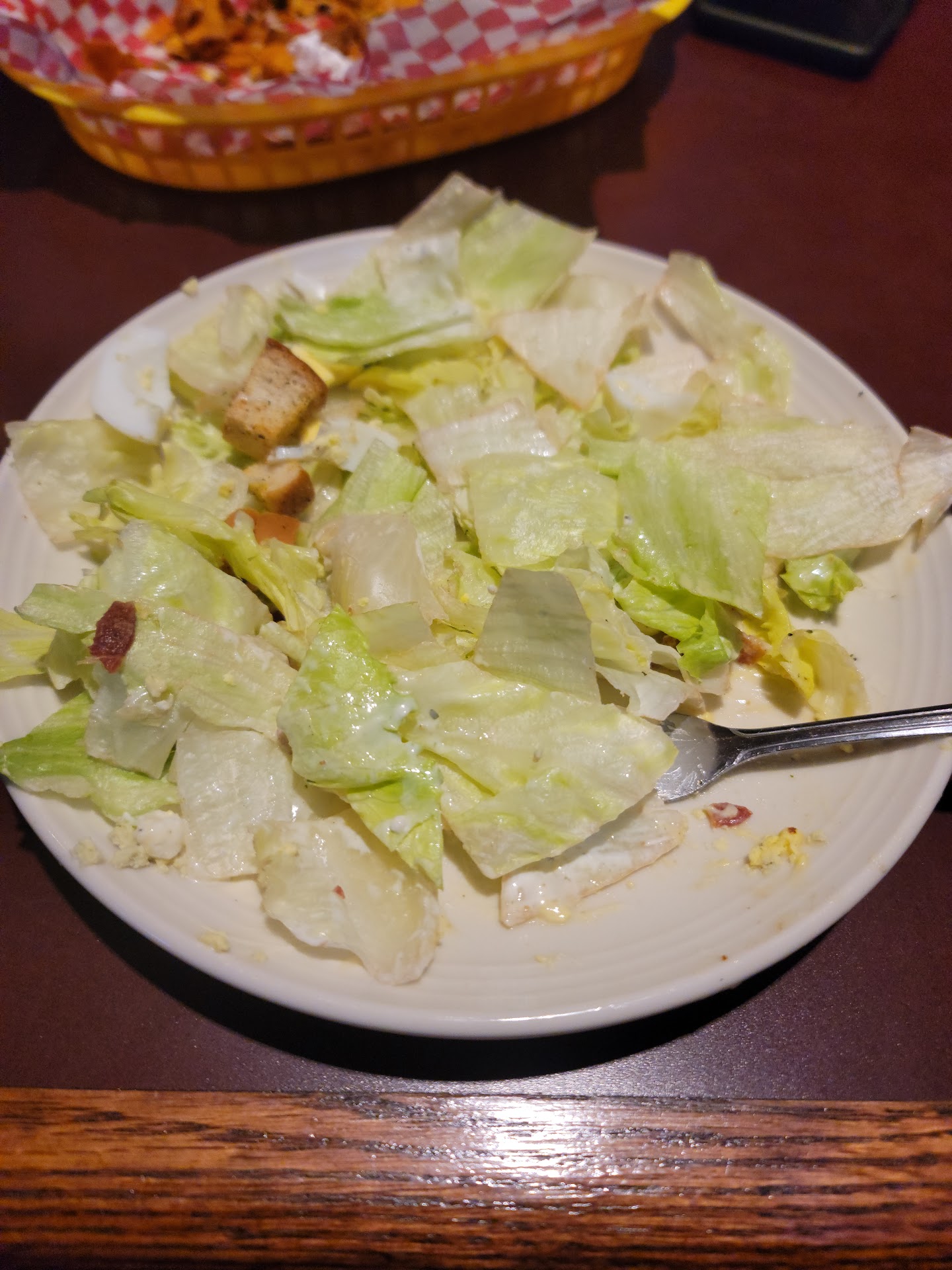The specific problems included watching the majority of orders carried from the kitchen brought to the wrong tables. Nobody wants to watch their plate of food carried around an entire restaurant. For our specific table, our apps arrived and were mostly gone before our three requests for plates were delivered. Thatâs fine that they needed to wash plates but they could,have brought out the baskets with paper in the meantime. Had we not gone ahead and ate without plates the appetizers would have been cold. After a very long wait, and asking a few rimes about the order status for our food, two out of four of us received our food. My salad was missing several things, which fortunately were delivers quickly. We also had to wait for actual silverware.