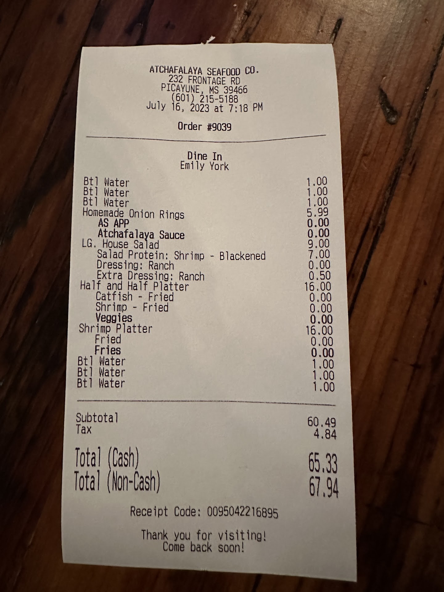 On Sunday July 16,2023 I visited the Atchafalaya Seafood Co. for my once a week after church dinner. Iāve been watching this place since it opened a couple months ago to see if the crowds slowed down enough for me to finally get a chance to try. Well this was my first and last time going there. Strike oneā¦.upon entering the parking lot I had no problem finding an open parking space close to the entrance. Once entering the building I experienced virtually no wait for a table other than one family in line ahead of us. Once seated, my party of three, we began to notice no one has greeted us for our drink or appetizer orders. After about fifteen minutes, and noticing others get seated and served drinks and apps , we decided to speak up. I flagged down a waitress nearby and asked if she knew who our waitress was? She had no idea but quickly approached the hostess stand and inquired. She returned saying she still didnāt know but she would be glad to take care of us! Keep in mind that the restaurant was slow at this time with a steady flow of customers walking in the door and being seated right away with no problem being assigned a waitress. Strike twoā¦.all three of us ordered water to drink. We were served bottled water and a cup of ice. We looked at each other and decided this is definitely different. After drinking our initial waters we were offered refills as expected. One again we were given bottled water. My wife decided to ask why? The waitress replied that it was company policy, and we were being charged $1 per bottle. Oh wow! This is a first for me. She stated she was informed by management that the pipes in the building were old and they didnāt trust the water supply. I asked how was the ice and the tea made? She couldnāt answer that! Strike threeā¦.when the kitchen runner arrived at our table with our food, a large piece of fish from my half and half platter had fallen out of the plate and onto the carrying platter. She apologized and said I will bring you another piece of fish to replace it. Well, she never returned. I was shorted that piece that I paid for. To conclude, Iāve decided that Iām not going to give this place any more of my business. The charges for water alone speaks volumes about the management and ownership of this business. Itās just a money grab and shame on you for doing...