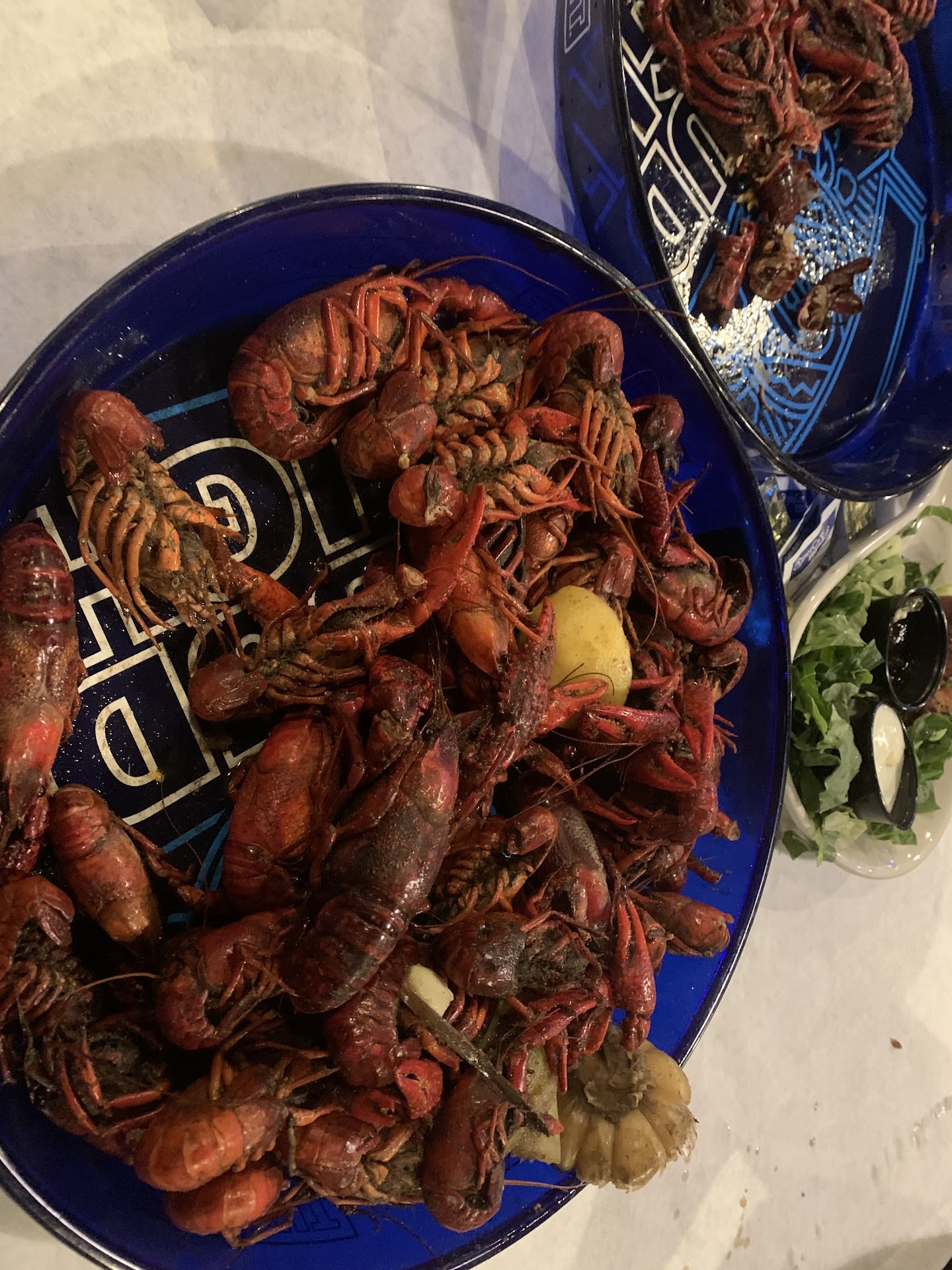 We usually order the 5-lb. boiled crawfish which usually arrives with a corn cobette and a few red potatoes. If your lucky you might get a few garlic pods, onions and celery in the platter. I'm still guessing if I'm really getting a full 5-lbs, the tray always seems light lately. I may bring my food scale with me next time. Sometimes the crawfish are expertly seasoned, one occasion they were over salted and over seasoned.