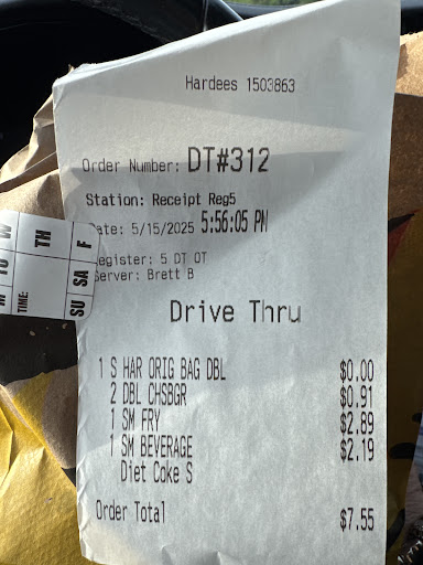 Read moreThey have recently had their service become subpar to what it was I visited once or week or so I stopped due to my order was always incorrect and then when I politely went in ro fix my order the kitchen staff fought about it then when I received my 2nd sandwich barley ANY bacon on.it like 2 baby pieces so due to trouble to just simply get a plain chicken sandwich chicken bacon bread shouldn't be that hard but apparently it is so I switched to sonic even liking the hardee's sandwich a bit better it's not worth the 20-30 min to get a sandwich. đ The Manger there is nice and tries but once person can not control everything and she is who her kitchen staff fought with was rude to ect.. wished her a blessed day and ry but have not been...