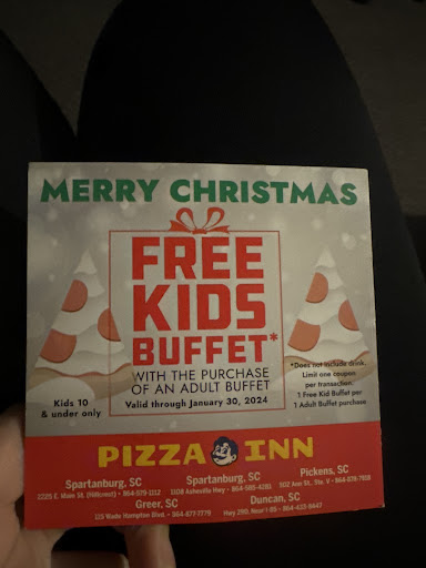 Read moreThe food was good and tonight they kept the bar stocked which is sometimes hit and miss. Our waitress was friendly and kept the drinks filled. After all that happened at checkout I feel guilty, I didn’t leave a tip because I forgot to go back to the table with cash. I plan to bring money by this week. I used a 2 adult buffet coupon and was told I could not use another coupon for my kids. That was completely fine (after I went to the table and read fine print) it says only one coupon per transaction. The issue, the problem, the absolute power trip manager. My parents were trying to use a free buffet for one of their grandchildren along with the senior discount. He would not allow this because in his words “we were trying to beat the system” (5$) . The child in question was an almost 5 year old that weighs 29 lbs with a lime sized brain tumor and a genetic hormone disorder who ate one pack of crackers and one slice of pizza. He also said he is responsible for printing all coupons for pizza inn which I find unbelievable. I keep reading all of his responses to these reviews and instead of apologizing and just moving forward he does exactly what he did tonight. Just wouldn’t stop and could never be in the wrong. Going as far and saying he’s trying to train his staff better. (His staff was patient and kind) Also to note a senior discount is a discount...